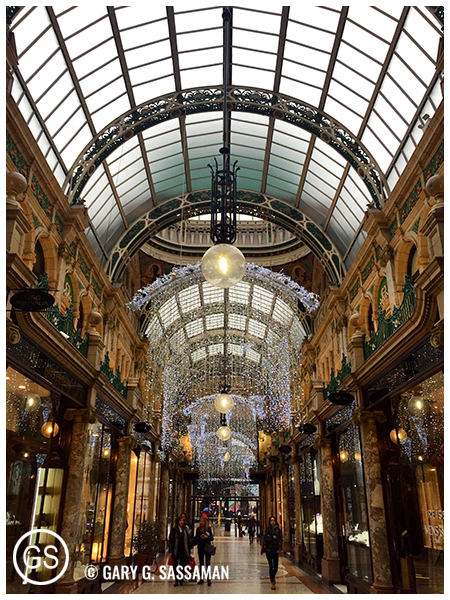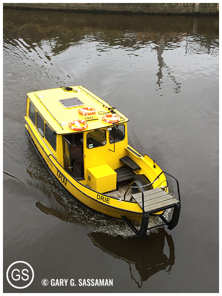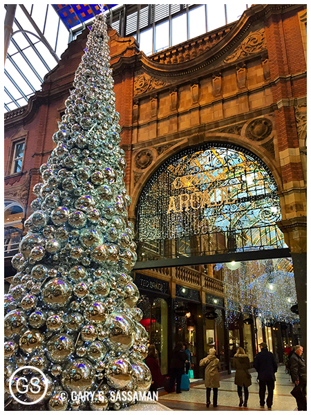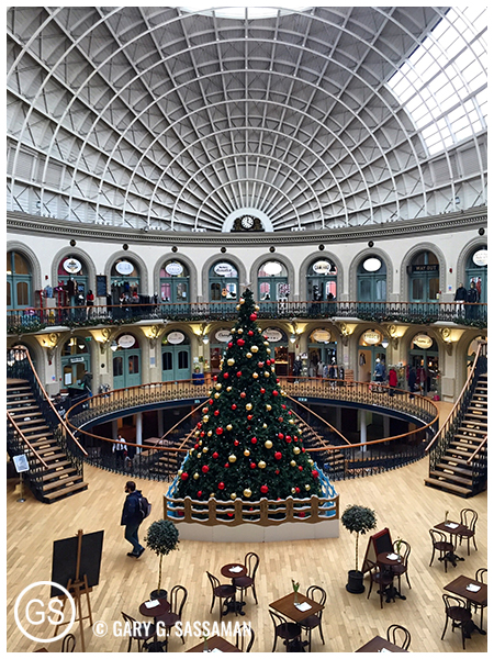 The next day was foggy and rainy, but that didn’t deter me from roaming all over downtown Leeds. Over the next few days I thoroughly explored that area, including the charming shopping arcades, and the bigger mall know as Leeds Trinity. I roamed around the canal, back and forth to the convention site, which was the Leeds Armory. I kept spotting that cute little yellow water taxi. I kind of fell in love with Leeds, to be honest, and I can’t wait to go back again. Adding to the charm: The city was just beginning to decorate for the holidays.