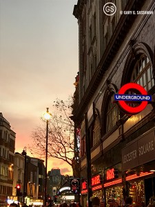 Headed back to my hotel via the Leicester Square tube station at sunset.