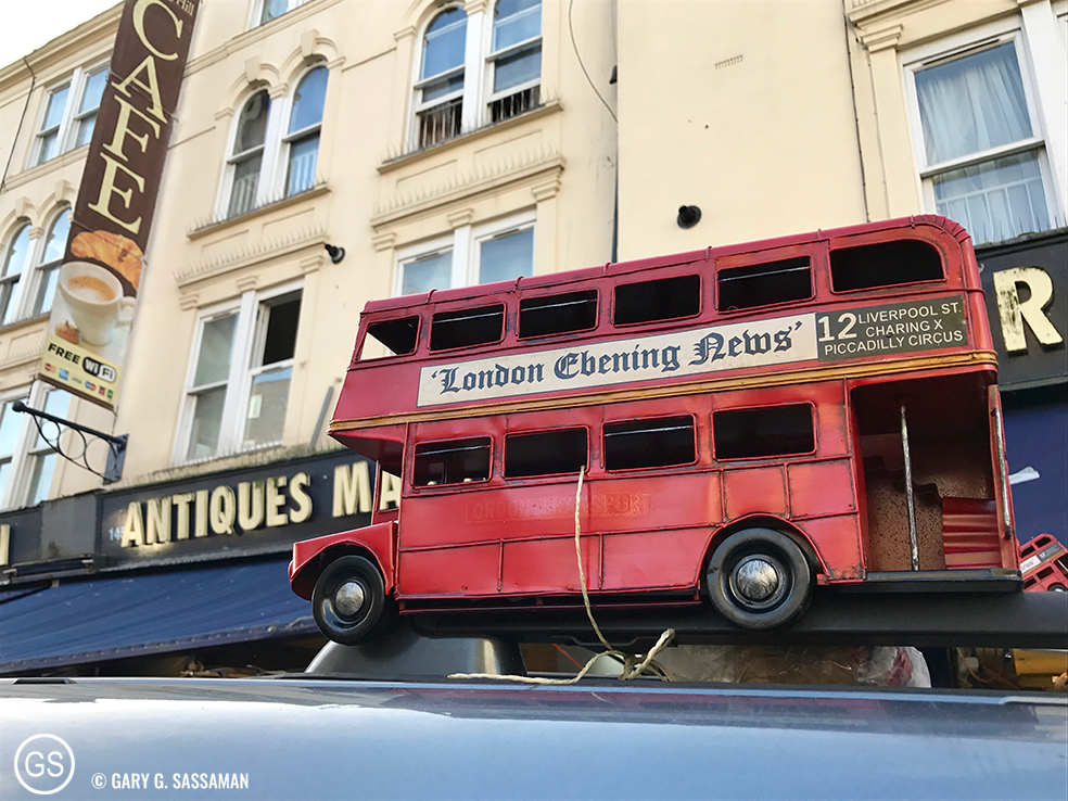 Part of the antiques market on Portobello Rd. on a Saturday. I would like to own this little bus.