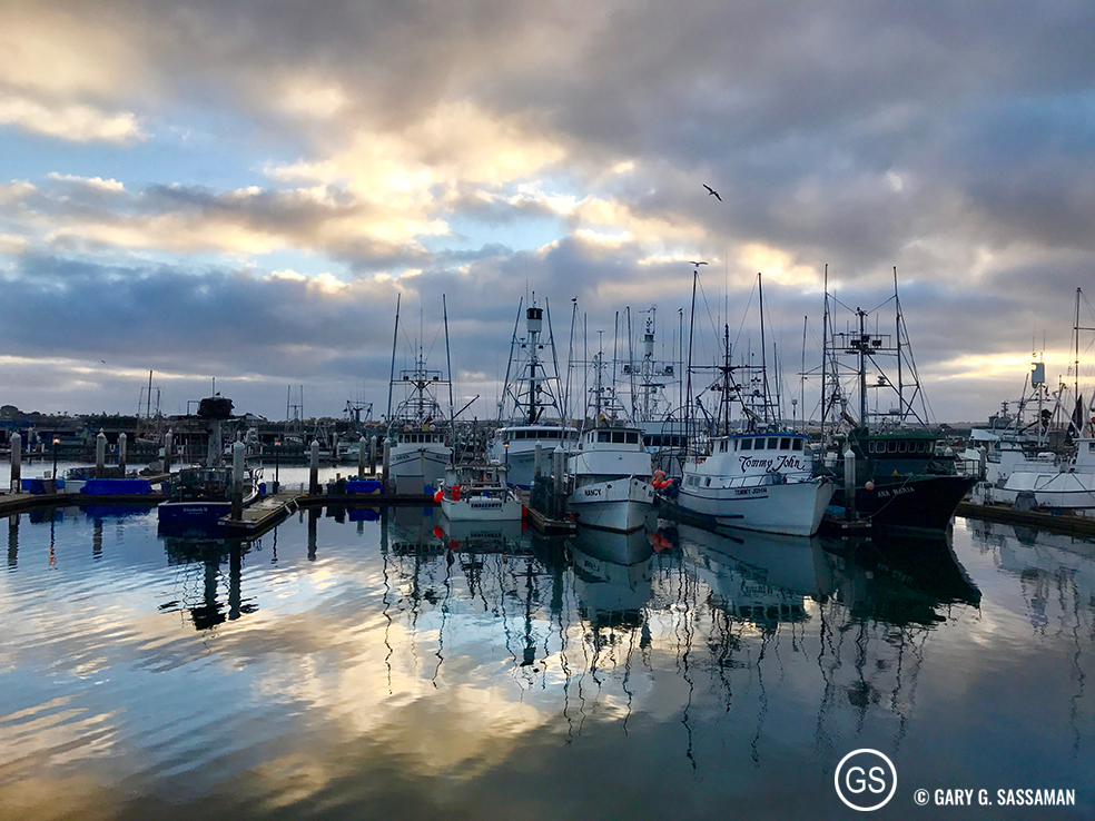 They call it Tuna Harbor, because that’s what it was years ago, the site of a thriving tuna boat fishing industry here in San Diego. Now? Not so much, although tuna boats still dock here and drop off their catch (there’s some kind of processing building there, I believe). Here it is on a cool day in the beginning of summer last year, right at twilight, after a rain storm. The water is placid and reflective, and it almost looks like brush-strokes. I used to walk through this area (which is north of Seaport Village) all the time. It was my go-to place for walking, especially on the weekends when I wanted to walk a quick two miles or so. I miss my downtown walks (I moved in August 2017). I don’t necessarily miss downtown, but that’s another story.