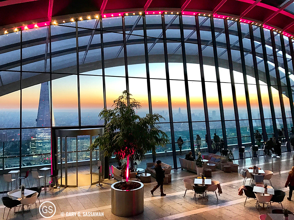 I have England on my mind. In a few short weeks, I’ll be traveling to the country of my ancestors for a LONNNNNNNG visit, the longest time I’ve ever been away from home. I can’t hardly wait. The photo above is from the prosaically-named Sky Garden, which looks out over the south end of London, directly across from the giant, sky-rending building known as the Shard (you can see it peeking out there on the left). London has a thing for naming their buildings, and the Sky Garden is in what is fondly known as the “Walkie-Talkie” building. For the next few weeks, I’ll be showcasing photos from my last visit to London in 2016.