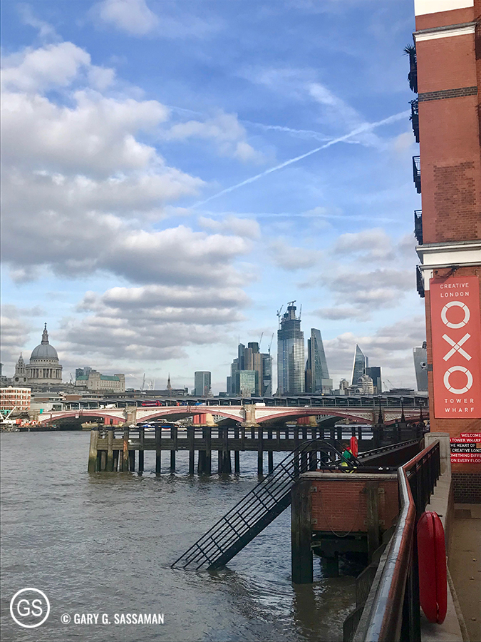 I love this view from the Southbank area of London, looking past the restored OXO building to St. Paul’s Cathedral and beyond. This is my favorite part of London, from about Westminster Bridge all the way up to the Tower Bridge. This photo is also at high tide for the Thames. And, oh! Those Clouds and plane contrails! I can’t wait to go back.