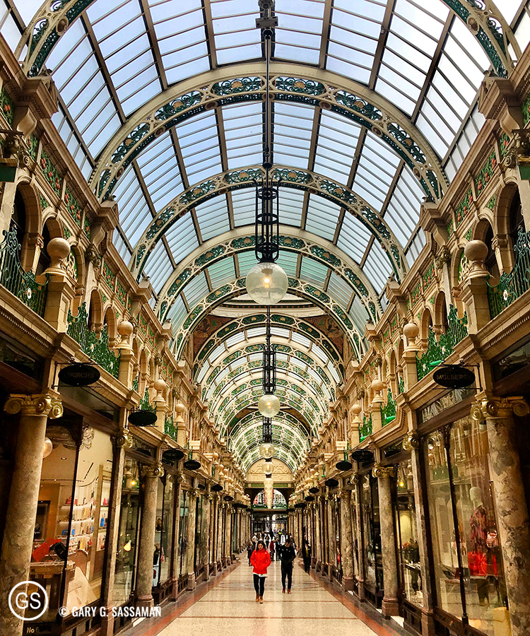 One of the beautiful shopping arcades in Leeds. I love these venerable old buildings, the world’s first indoor shopping malls, I suppose (although any market could be categorized as a “mall” when you think of it). I especially love them when they’re all gussied up with holiday decorations. I’m hoping my upcoming trip will include lots of British Christmas cheer!