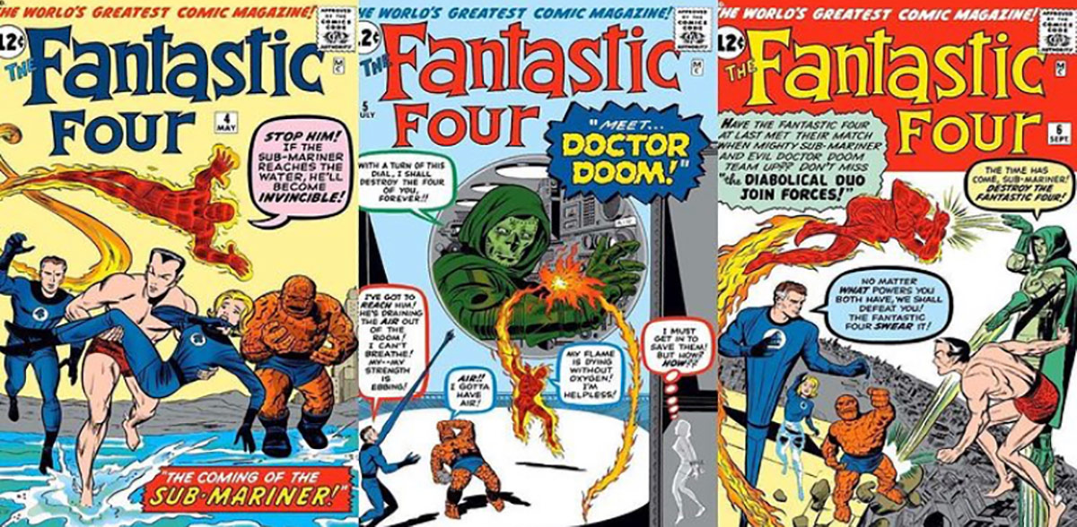 And then along came Fantastic Four issue #3 and I was hooked. “THE WORLD’S GREATEST COMIC MAGAZINE!” exclaimed the cover and even at the ripe old age of 7 I thought that was a bit excessive, even if I didn’t quite know what excessive meant. (I was a precocious kid, no doubt fueled by my early reading abilities gleaned from comic books.) But it was true. In issue #3, the FF got costumes, a full-blown headquarters in the center of Manhattan, and a flying bathtub of a “Fantasti-Car,” and I loved every panel of it. When Sub-Mariner appeared running towards the reader, kidnapping Sue Storm, the Invisible Girl, on the cover of #4, my world changed. Doctor Doom was next in #5, Sub-Mariner AND Dr. Doom TOGETHER in issue 6 and oh my God, where does this stop, never I hope!