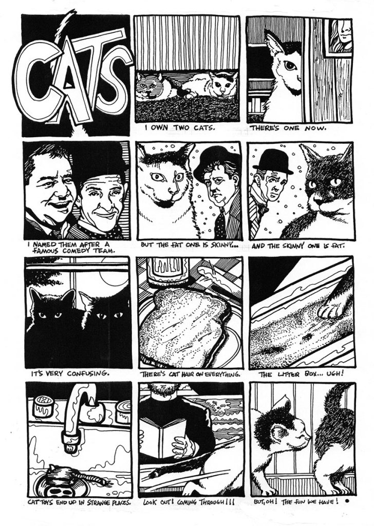 Innocent Bystander never set the world on fire, but I did develop a pretty faithful following and got some nice letters from people from as far off as Australia and Germany. (I even got an order for a back issue from Japan once. The postage cost far more than the cost of the book.) I got decent reviews, too, pretty much across the board, even from (shockingly enough) The Comics Journal. The first and second issues were all anecdotal comics stories about my life, but with issue #3 I focused entirely on my love of the Marx Brothers, who I discovered as a teenager. Issue #4 showcased my cats, Stan and Ollie (sadly long gone), and issue #5 was my first long-form story, titled “And Then I Saw Her Face,” after the song by The Monkees. It told the tale of my first date to an eighth grade dance. Issue #6 went back to more anecdotal stories, but it included one of my personal favorite stories, “I Am Joe’s Stomach,” taken from the title of a series of Readers’ Digest articles about bodily functions. That magazine was a mainstay at my maternal grandparents’ house and this story was all about growing up with them.