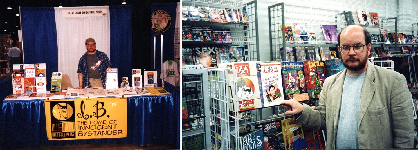 There was an issue #2 (a year later in 1996), followed by issues #3 and #4 (in 1997). In early 1998, I quit my job at KDKA and decided to try and make this comic book thing a full-time job. I published issues #5 and #6, plus a trade paperback collection of issues #1-4 titled The Collected Innocent Bystander Vol. 1, and I hit the convention circuit, grandiosely calling my participation the “Innocent Bystander World Tour.” I even did a separate catalog and a tour badge, featuring Stan and Ollie, the world famous IB cats. I did four shows that year: Pittsburgh Comicon (in my backyard), WizardWorld Chicago, San Diego Comic-Con, and SPX (Small Press Expo). I also took out a loan to finance all of this, to the tune of about $15,000. My commitment was serious if somewhat financially frivolous. I didn’t have a real job at the time.