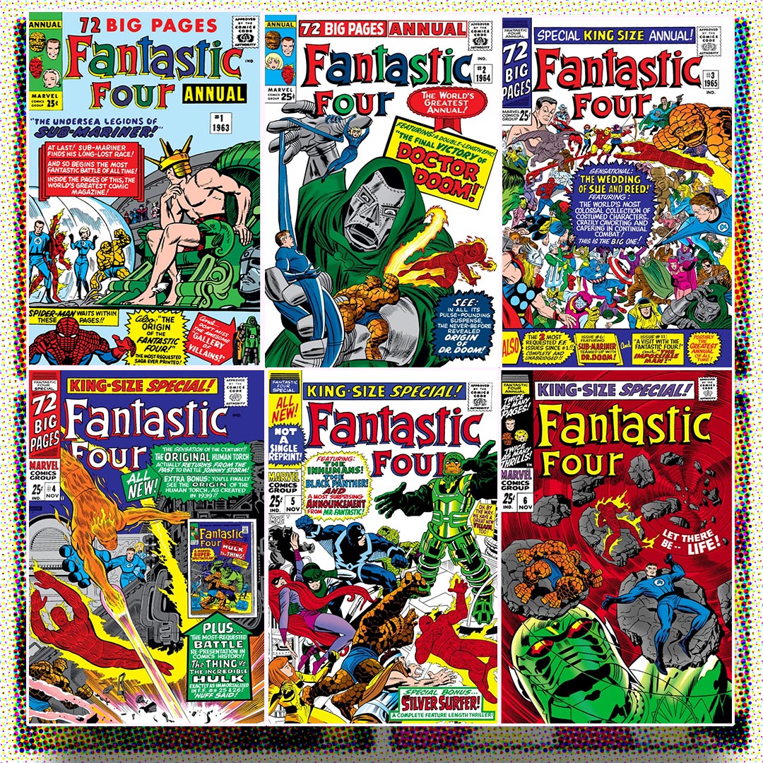 Moser’s had a kind of nook which was anchored by a huge, square candy display, with open boxes of all kinds of sweets along all four sides. Opposite that display, on the three walls facing it, were huge wooden racks featuring magazines and paperbacks, and one of them devoted to comics. Sometimes they got in comics they didn’t quite know what to do with … I remember discovering Superman Annual #1 in a different part of the store, in the back, past a couple of ice cream and soda coolers (the kind that opened from the top) and screaming for my brother to come and see. He thought I was being beaten up or something, but there it was, stacked apart from the “regular” comics, probably because it cost more than double. Even at the ripe old age of 5 years old, I loved the concept of the Superman Annual, if not the execution. The interior, made up of stale old Superman reprints (for the most part) from the 1950s, didn’t live up to the wonderful promise of that incredible Curt Swan cover. The layout of that cover was duplicated countless times with the DC Annuals, and we bought them all: Batman, Flash, Secret Origins, even Sgt. Rock. And when Marvel came out with their own annuals (also known as “King-Size Specials”) in 1963 with new material in them, my mind was officially blown. To this day, my favorite comics are Fantastic Four Annuals #1 through 6, the perfect combination of incredible storytelling and summertime memories. (The first Marvel Annual, Strange Tales, came out in 1962 and was all monster story reprints.)