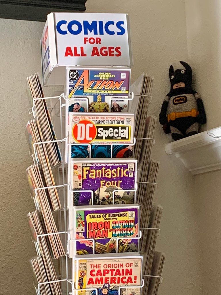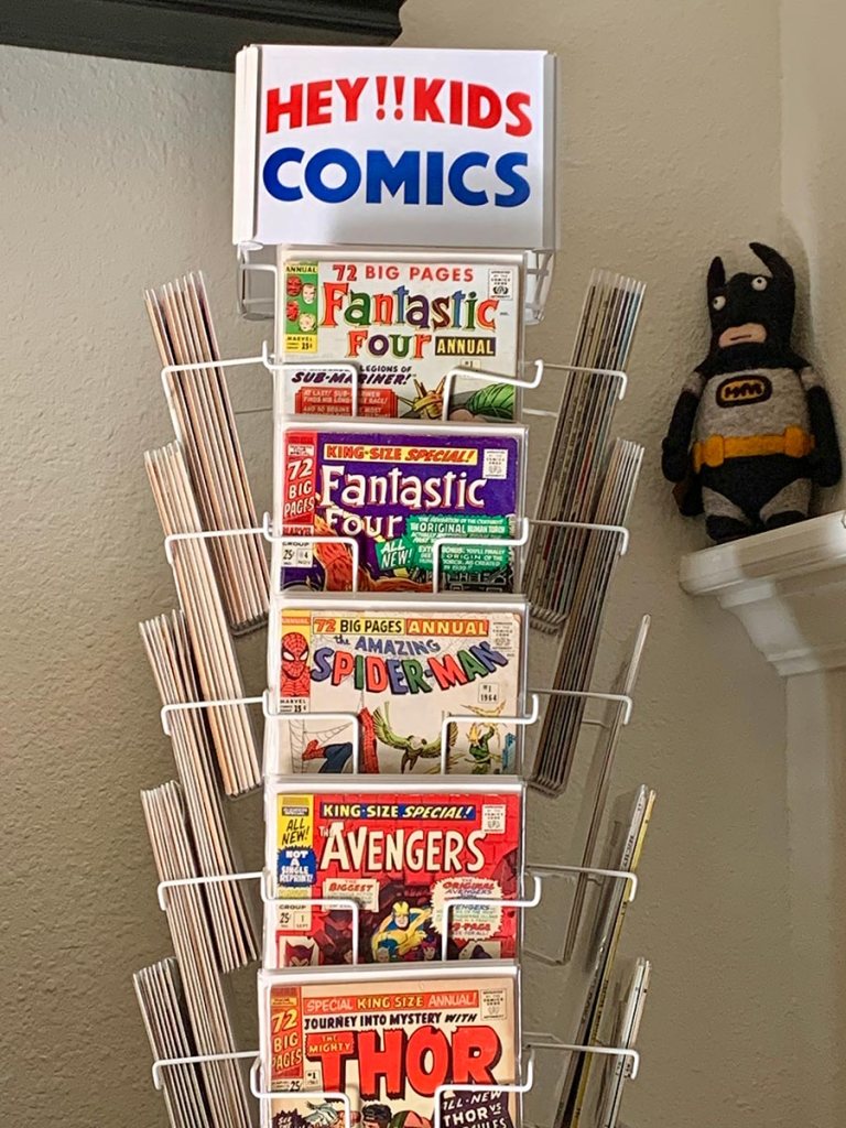 These days, I have a spinner rack in my living room, right next to my TV and I find myself looking longingly at it on a regular basis. It’s filled with comics from my youth, including a run of every Marvel comic cover-dated December 1965. Why that date? I don’t know, other than that’s the month Fantastic Four #45 came out, my favorite issue ever of Marvel’s flagship title. I also have every Marvel Annual from 1962-69 (minus the Millie and Patsy ones) and a row or two of DCs, plus other comics that strike my fancy, all of which I picked up for a reasonable price.