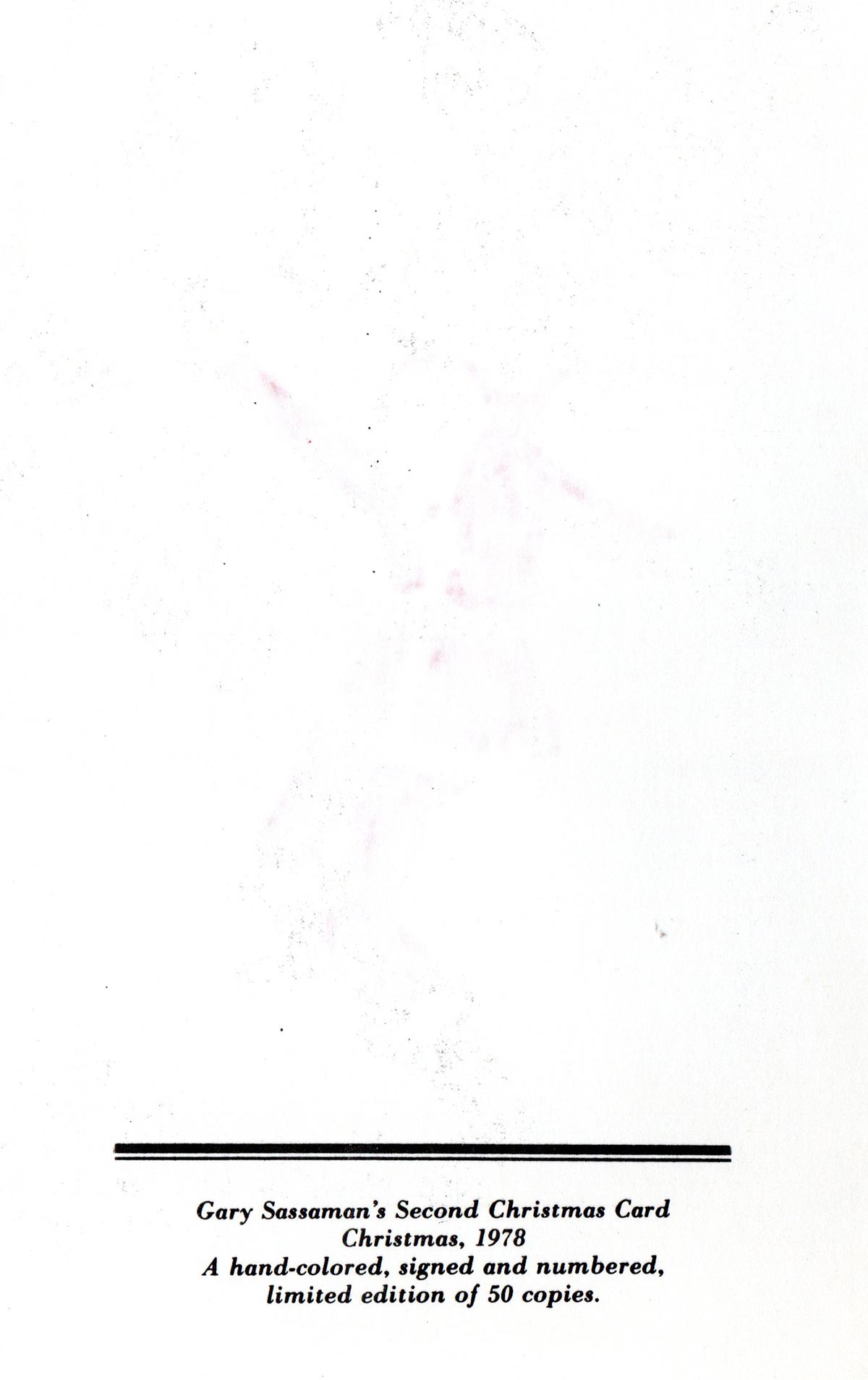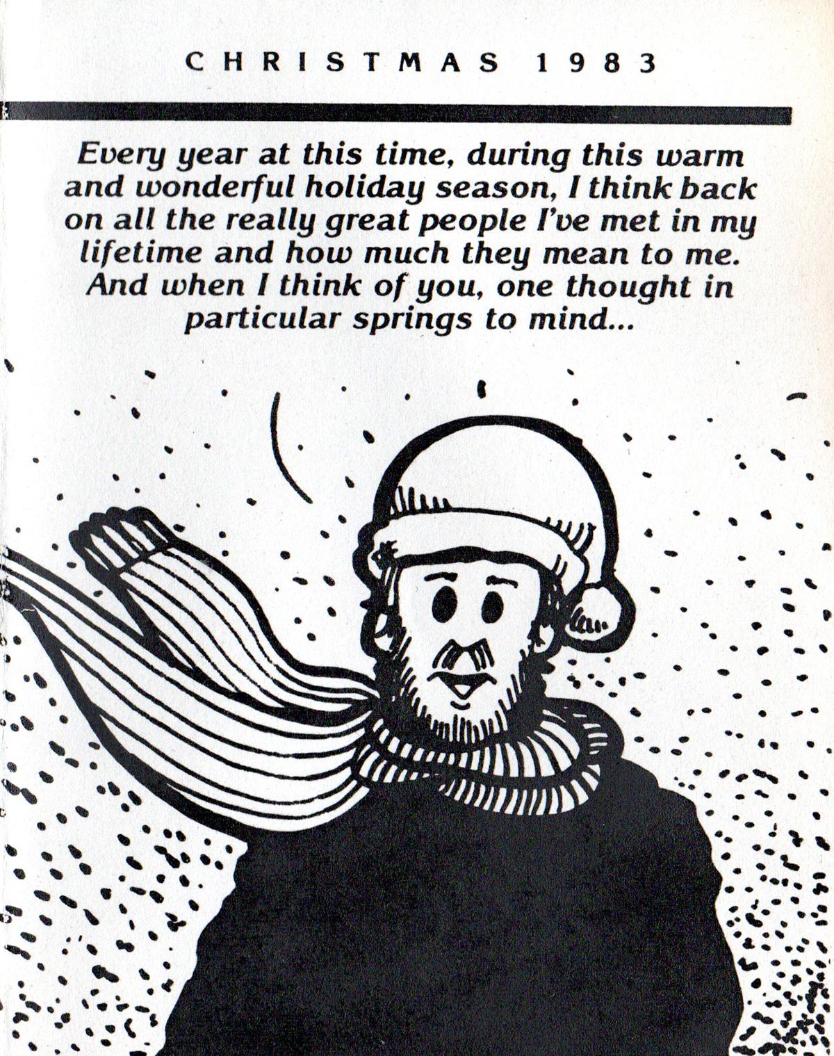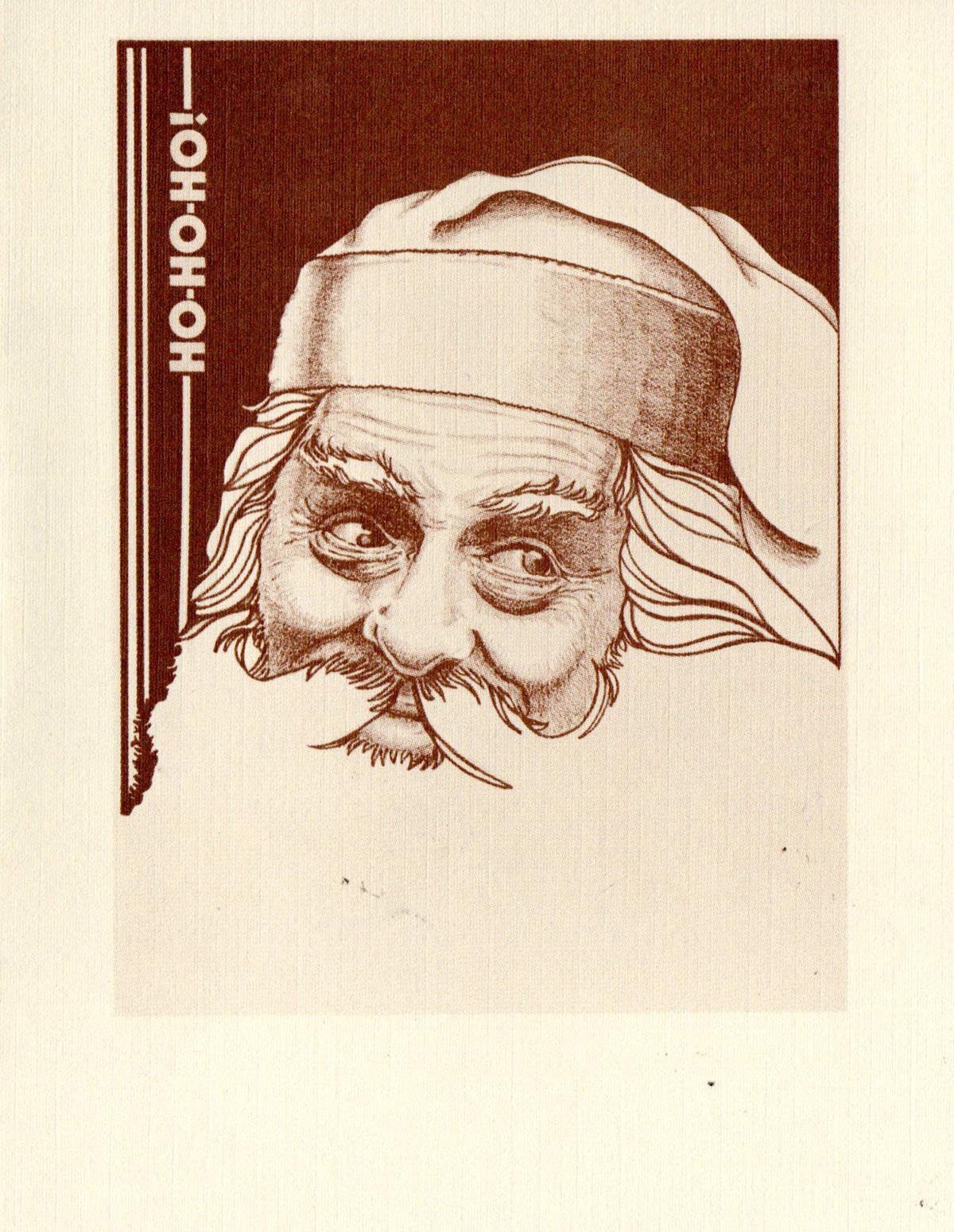 I’m not sure what the deal was with this one … it didn’t have any kind of message inside. Did I write personal messages to 100 people? Did I even know 100 people? The mind boggles. I do like that Santa illustration I did, though. I think I still have the original of it around here somewhere.