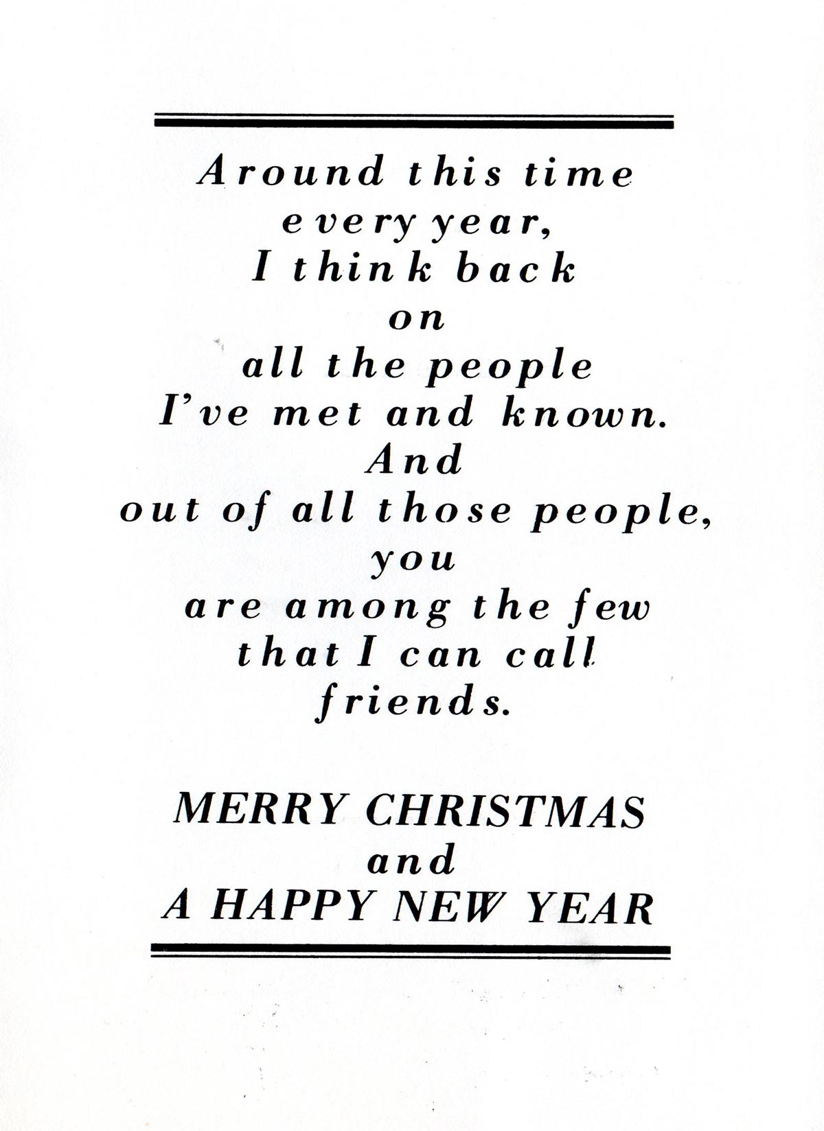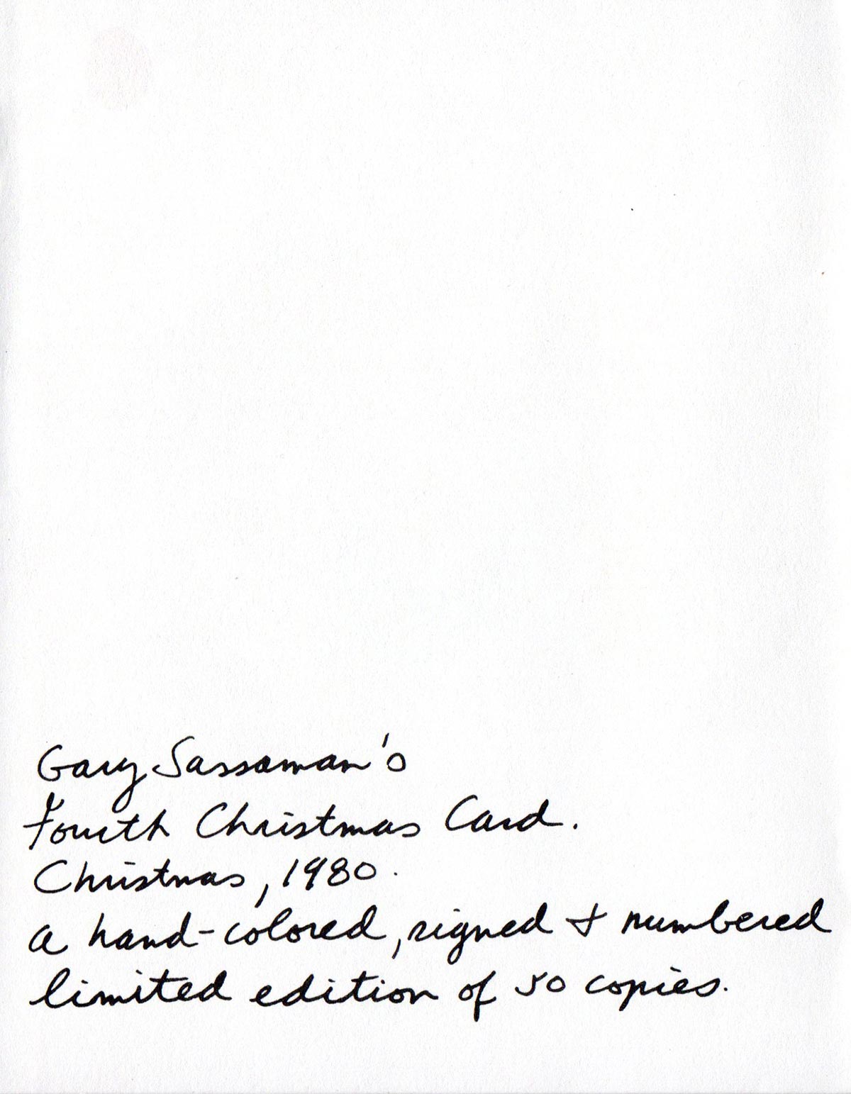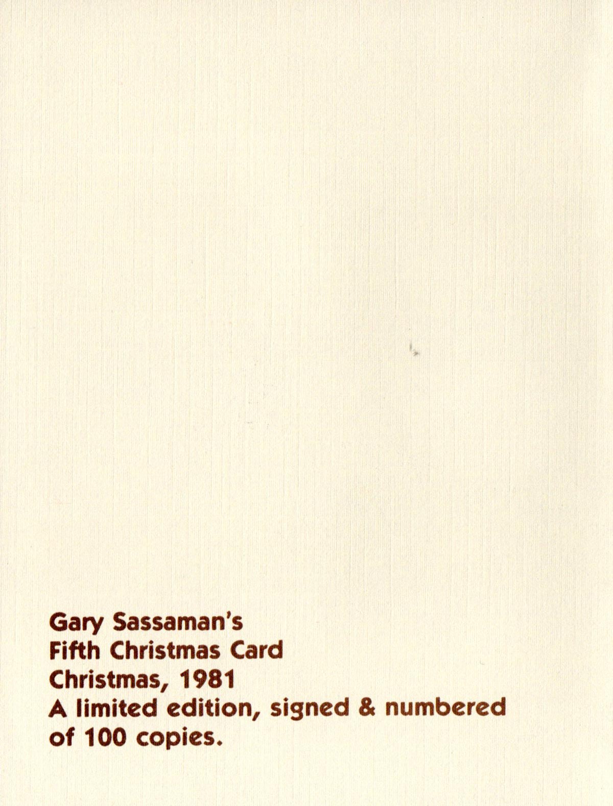 I’m not sure what the deal was with this one … it didn’t have any kind of message inside. Did I write personal messages to 100 people? Did I even know 100 people? The mind boggles. I do like that Santa illustration I did, though. I think I still have the original of it around here somewhere.