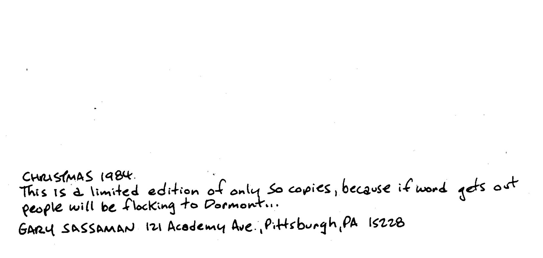 WOW. I don’t know what possessed me to do this. Dormont is a small suburb of Pittsburgh, PA. I guess I was somehow obsessed with The 3 Stooges at that point. Or just going for a really cheap joke.