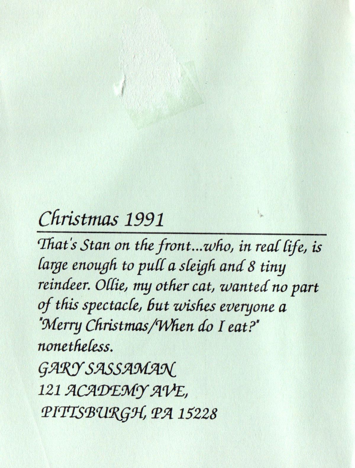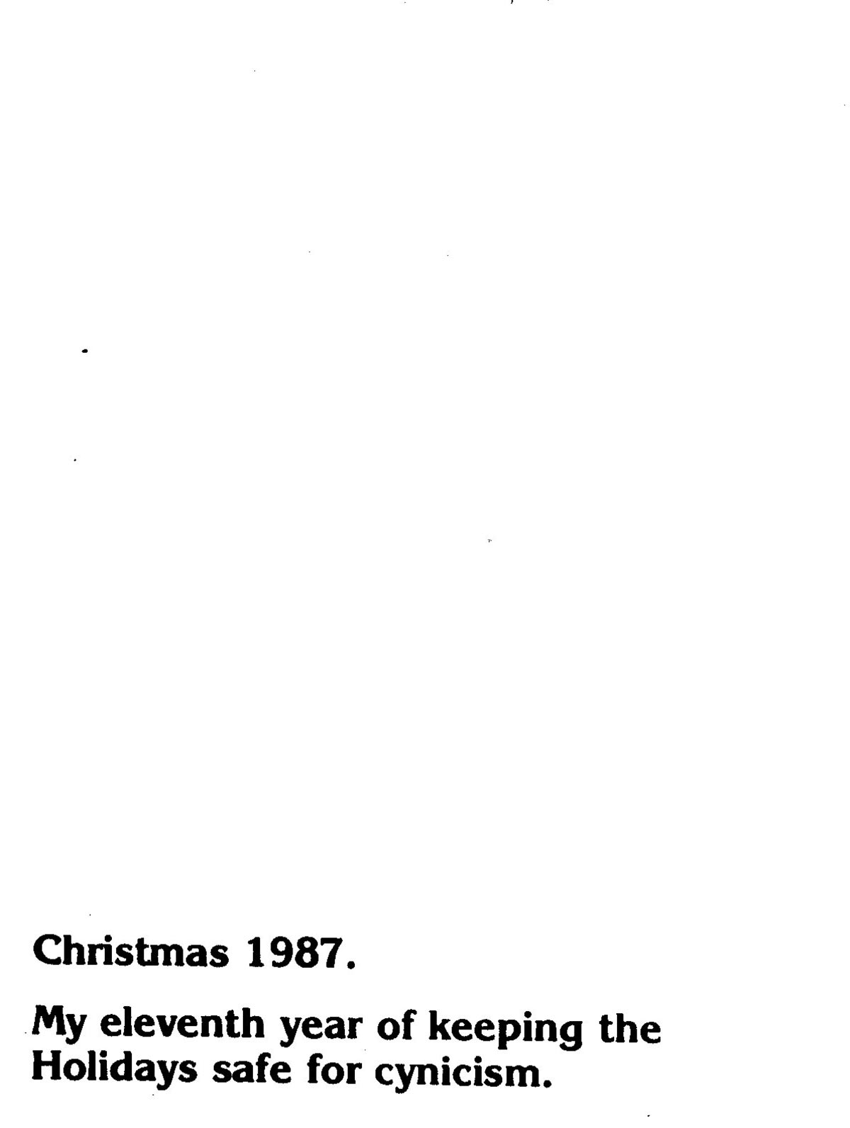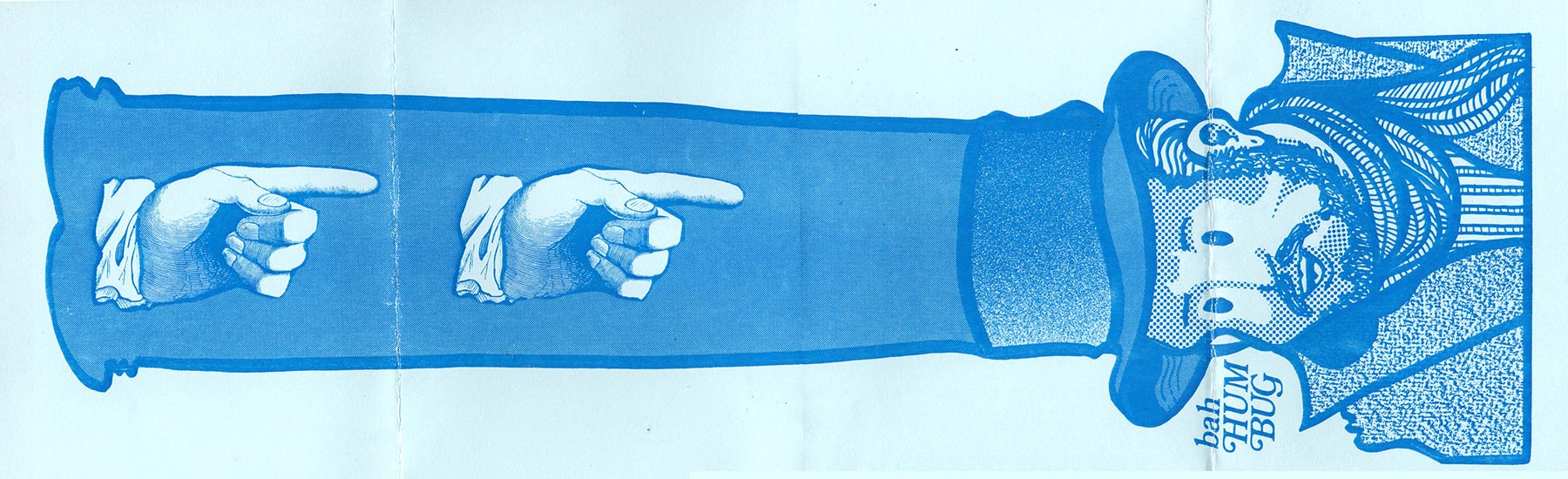 This one was meant to unfold vertically (not horizontally as shown) with each hand being a separate fold until you got down to old “Bah Humbug” me. It must have summed up how I was feeling about both the holiday season and life in general in 1985, sorry to say.