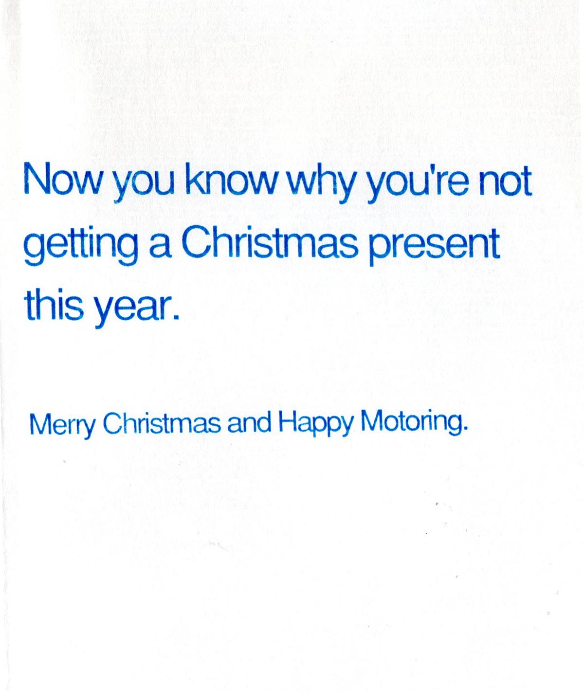 In August of 1990, I bought my very first car, a blue Honda CRX. It was an absolutely stripped down version: The only option I added was a radio. It drove like a little truck but it kept me going—including a cross-country trip when I moved to San Diego—for 16 years until 2006 when I bought yet another blue Honda Civic (which I still have). I am decidedly not a car person. Anyway, hence the mercenary tone of this year’s card. I was feeling the financial pinch of being a car owner for the first time.