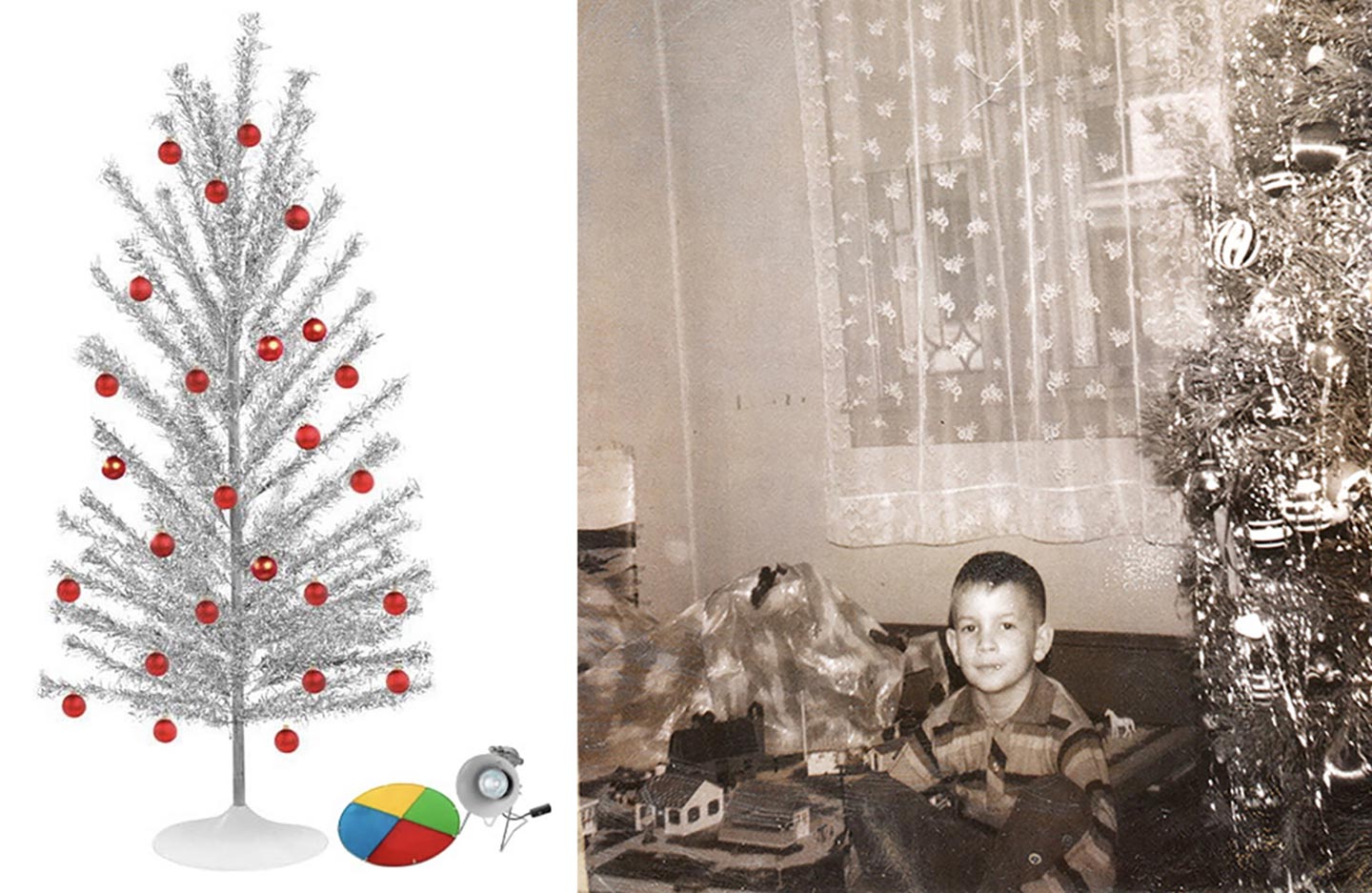 When I was really young, we got a real tree, but one year my Uncle Bud got an artificial one, the silver kind with the slow, revolving color wheel. My mom was sold on that minus the color wheel (she was never fond of that modern convenience known as “electricity,” warily unplugging the toaster and electric can opener after each use). She decorated the silver tree with just red-colored ornaments and it was actually a very impressive sight. A few years later we got a “real” fake tree, when they started making more realistic ones that looked like classic evergreens.