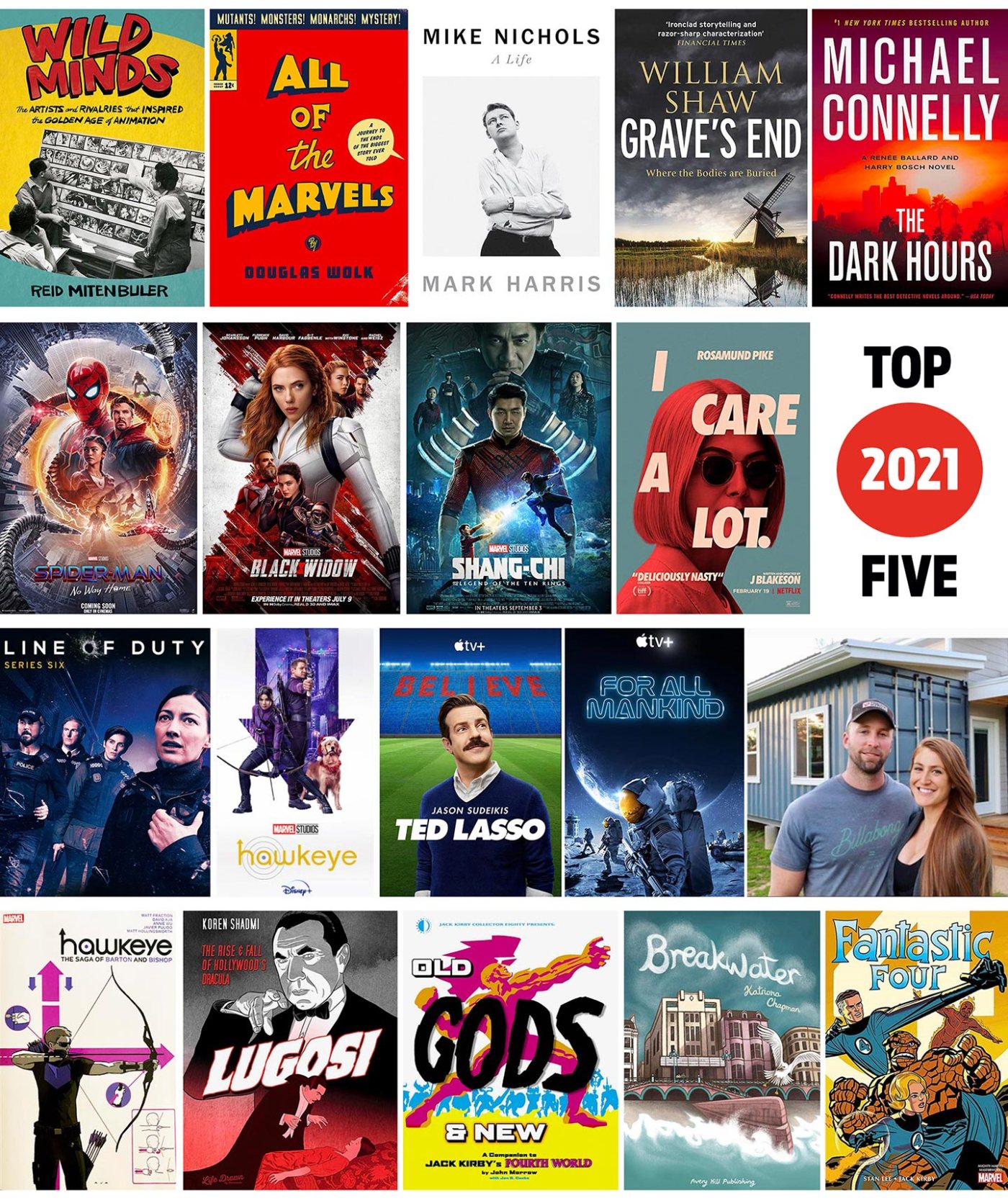 2021 marked my first (almost-full) year of retirement, so I had plenty of time to watch, read, and wander in my never-ending quest for new movies, TV shows, and books. Here are my top five picks for the year in comics and graphic novels, books, movies, and TV. Longer reviews of the books can be found in my monthly write-ups of what I read on this blog. Unless otherwise noted, these books, shows, and movies were published or released in 2021.