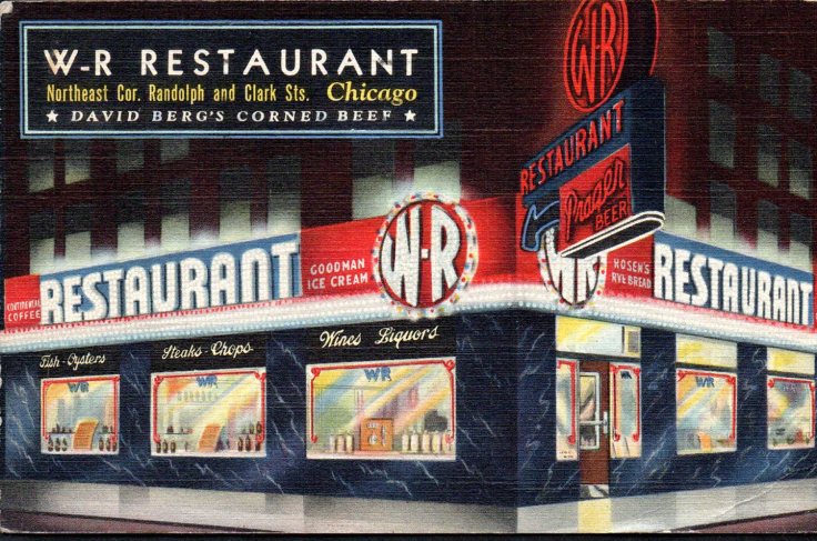 I find myself strangely fascinated by restaurant cards and this colorful example shows why … do places like the W • R Restaurant in Chicago, IL even exist anymore? The back says “There is no better food anywhere at any price!” It’s postmarked March 13, 1945 and reads:
