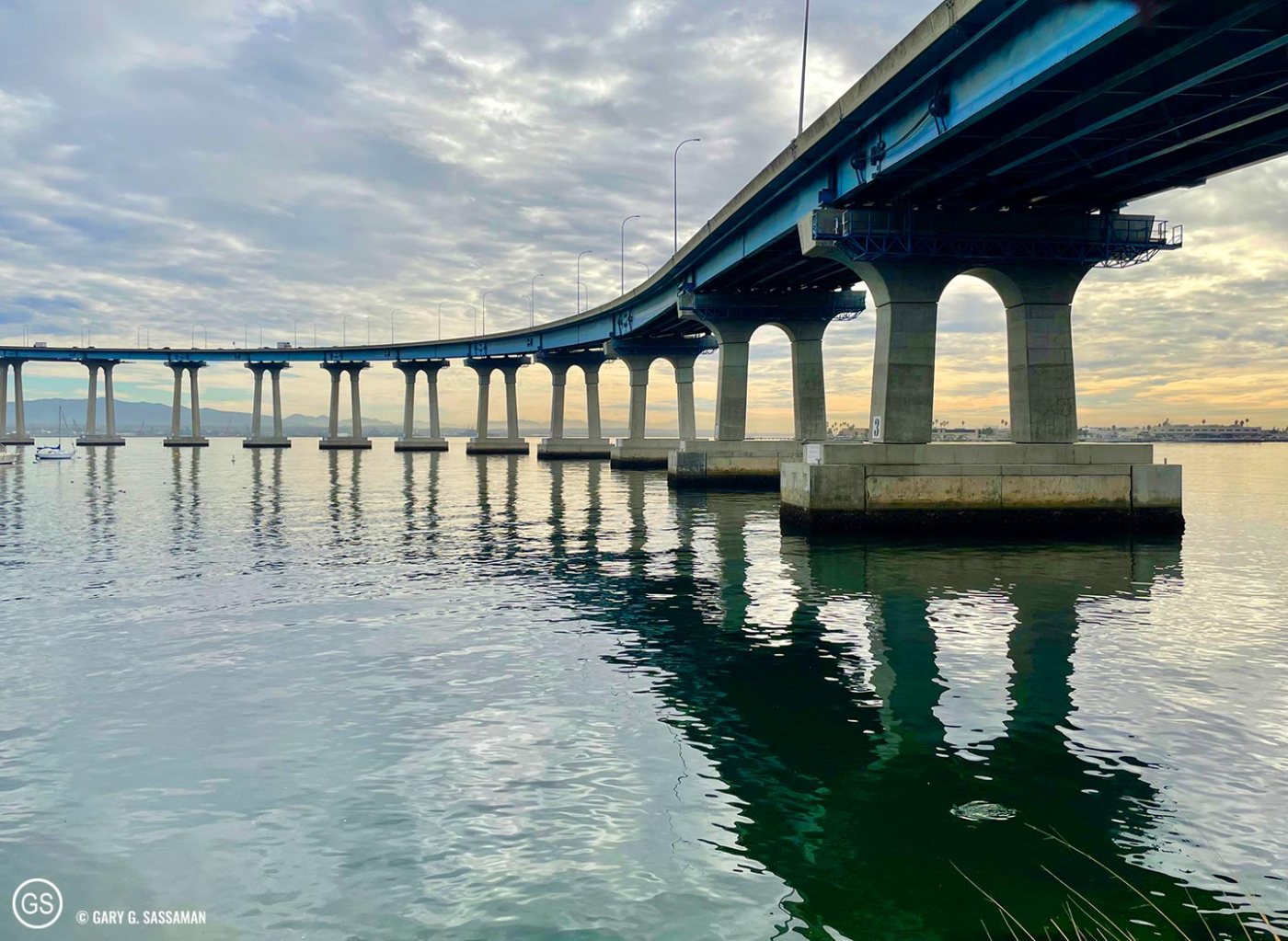 It’s the thing that separates us from yet connects us to the mainland. I travel this 2.1 stretch of arching steel two or three times a week, to and from visits “over there” and I am never not in awe of it … it’s beauty, it’s architectural excellence, it’s engineering precision. The view coming across the Coronado Bridge is different each time, depending on the time of day, the weather, the sun, the moon, or the lack of both. I feel so lucky to live here and to have this marvelous gateway to travel over each time I come home … it makes for a grand entrance every time.