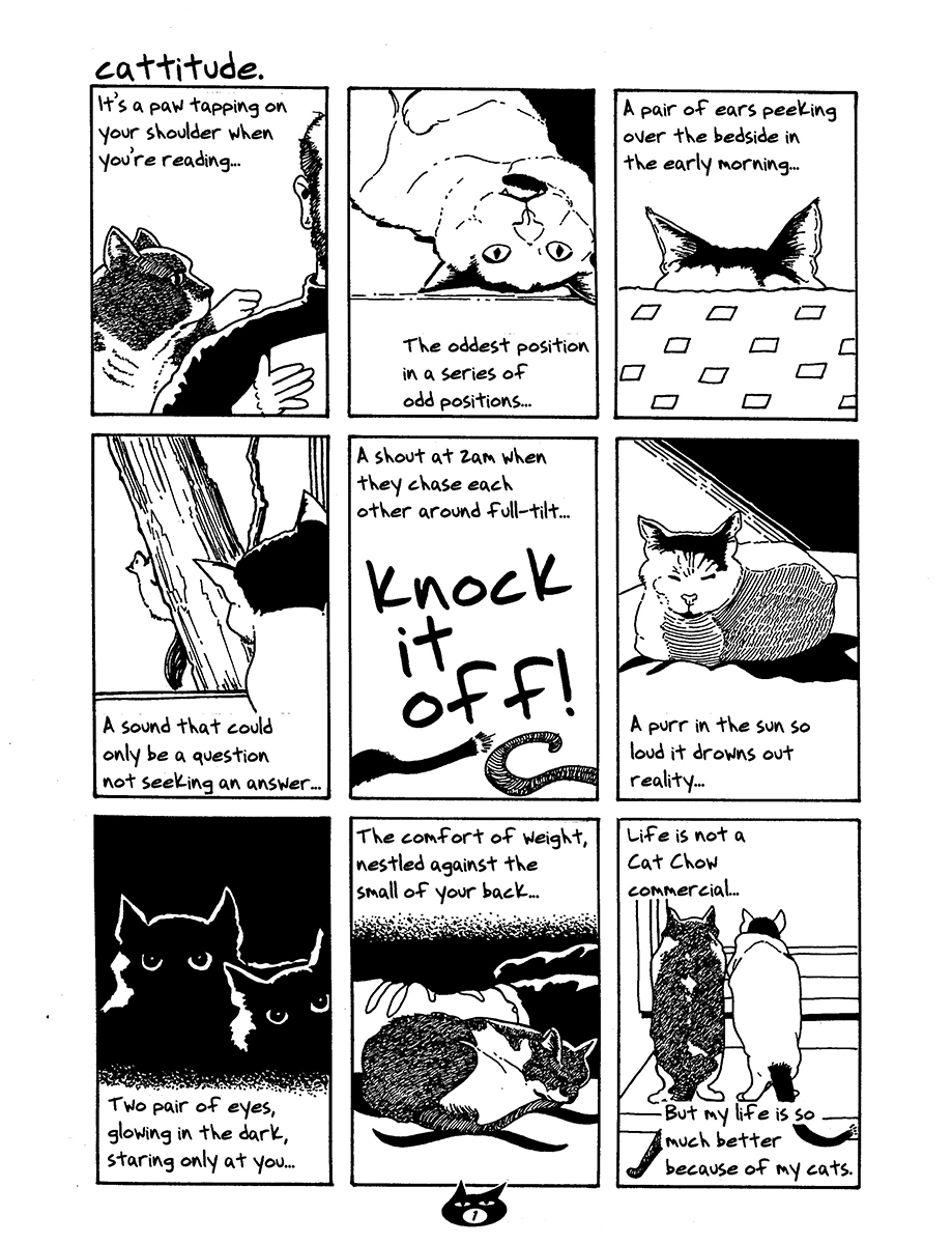 “When we first perused Innocent Bystander #2, we praised the delightful comic pages focusing on the two IB cats, Stan and Ollie, pointing out that they captured the true essence of catness in a way that strips like Garfield never do. We asked at that time for a full book of cat tales—and now our request has been answered!