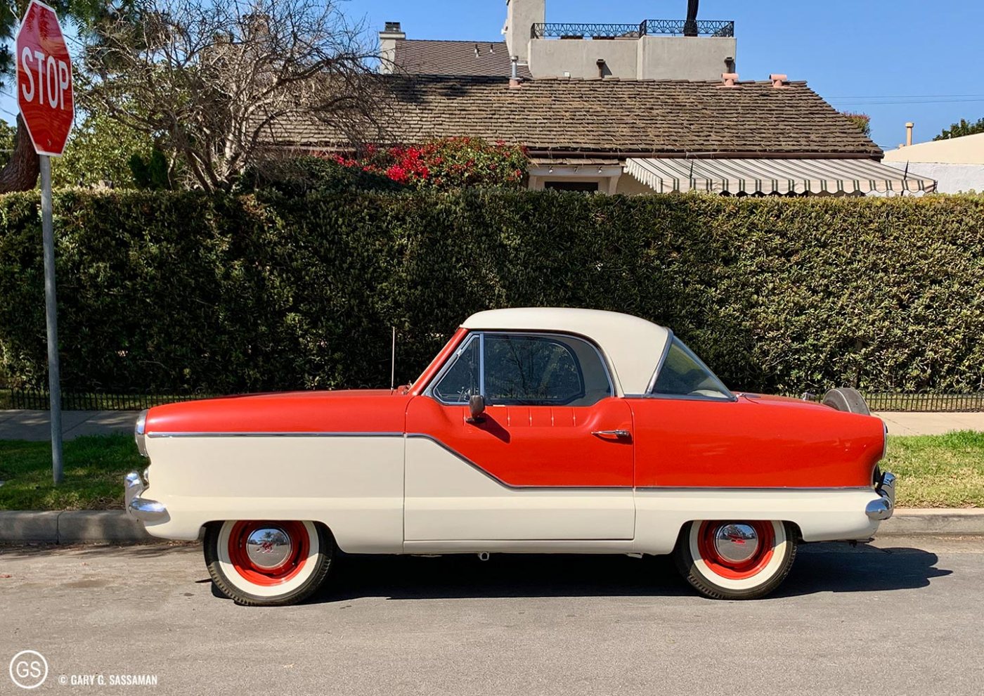 Well, it doesn’t quite have the ring of Prince’s “Little Red Corvette,” but it sure is a cute little car. I find some of the most unusual cars on my walks here in my native Coronado, along with Volkswagen vans, golf carts of all shapes and sizes, and—unrelated—free little libraries. But this little beauty is one of my all-time favorites.