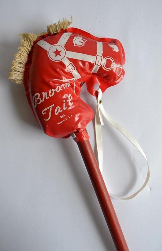 That picture up top is of me around the age of three or four, I reckon, enjoying life in much simpler times. I’m not sure if I’m a cowboy or a farmer in that photo; I sure do look like a farmer, but I kind of fancied myself the cowboy type, at least at the ripe old age of four. I definitely recall having a red stick horse, the kind that was just the head with a mane and a stick attached to it (like this one to the left). I’m sure at some point when this photo was taken, I was “riding” around the house, probably making a lot of noise (the stick horses required you come up with your own whinnies), and more than likely being yelled at to keep it down, “Dammit, I’m watching my soaps.” Still I look happy, don’t I?