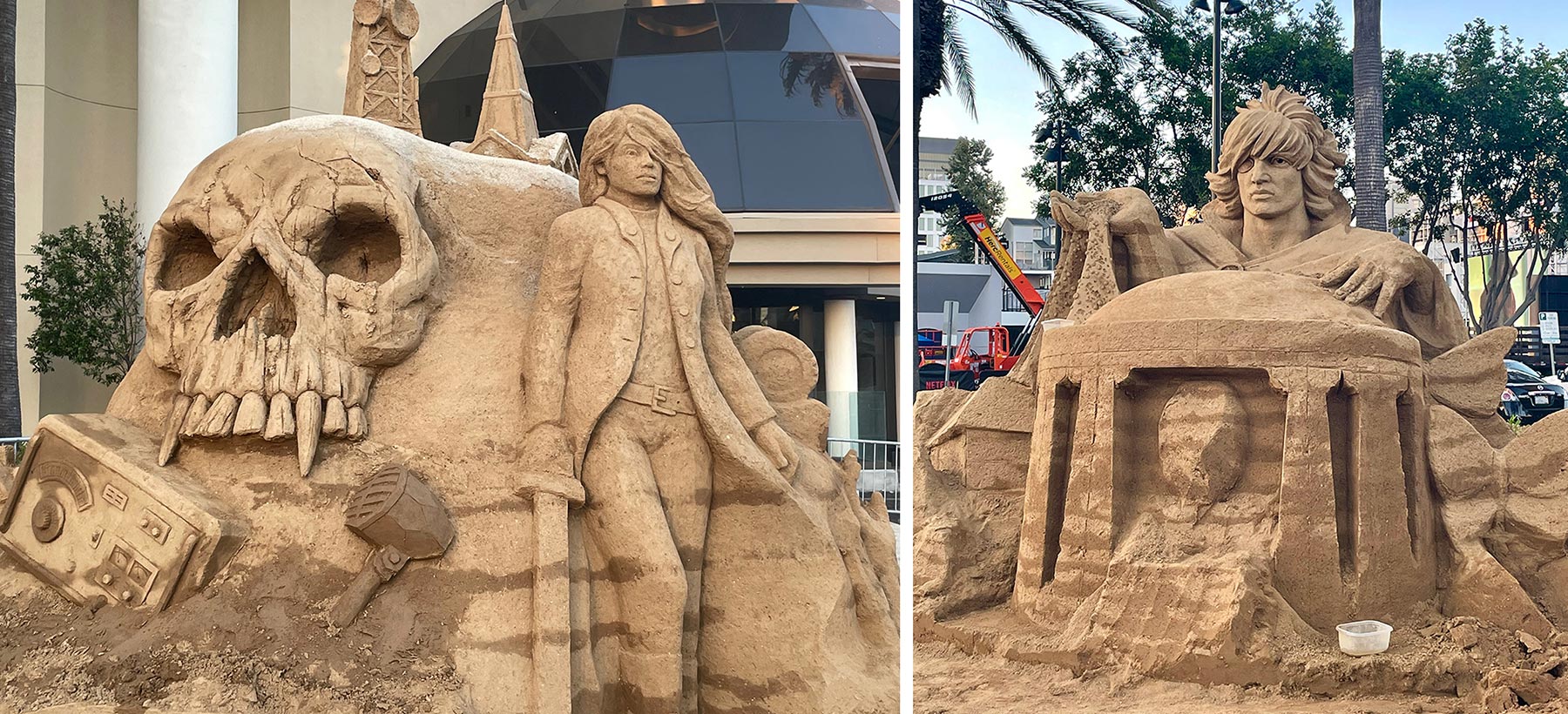 Not sure which Netflix publicity genius decided to promote their new series The Sandman, based on the popular Neil Gaiman-created DC Comics/Vertigo series with a set of sand sculptures, but whoever it was, they deserve a raise. These were located across Harbor Drive from the Hall A side of the San Diego Convention Center.