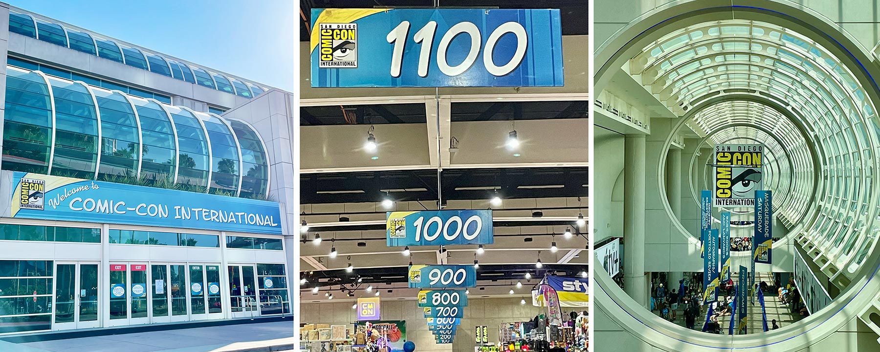 The absence of the DC booth was particularly painful, since it has been an integral part of Comic-Con for numerous years. As I wrote about in this post, DC was among the first big comics publisher booths, one that set the stage for bigger and better booths from Marvel, Dark Horse, IDW, BOOM!, and others, including some companies which no longer exist. DC’s new corporate parents, Warner Discovery, opted for a Shark Week blimp as a Comic-Con presence that trolled the San Diego skies all weekend, showing that the current owners of Superman, Batman, and Wonder Woman would rather promote a bunch of sensationalistic reality TV crap than the “World’s Greatest Superheroes.” Probably for the cost of that painted blimp, the fuel it needed to fly around, and the crew to fly it (not to mention its insurance), DC could have had their old booth back, once again holding court in the Comic-Con Exhibit Hall like in years past. While both DC and Warner Bros. had a number of panels, without that marquee space on the floor, Comic-Con just didn’t seem the same to me. (It also didn’t seem the same in 2019 when WB insisted DC fit into a humiliating corner of their ugly and poorly designed booth, led by a WB exec who had no reason to be dabbling in comic convention planning. She was summarily laid off by the previous management, in one of the few good decisions they made.)