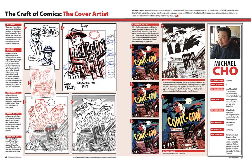 This edition also featured one of my all-time favorite articles, “The Craft of Comics,” a section showcasing how comics are created, including two-page spreads (I’m big on those, if you haven’t noticed), devoted to the editor (Lauren Sankovitch), the writer (Kelly Sue DeConnick), the artist (Steve Lieber), the color artist (Laura Martin), the lettering artist (Richard Starkings), the designer (Chip Kidd), and the cover artist (Michael Cho), in which each explained how they go about creating a comic. This section had its own “live” component at Comic-Con, where a number of panels including the above-names participants talking about how they make comics, another part of the educational aspect of the event.