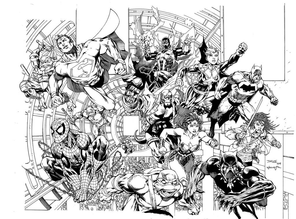 Jim Lee’s cover pencils alongside Scott Williams’s inks for the 2019 Souvenir Book cover.