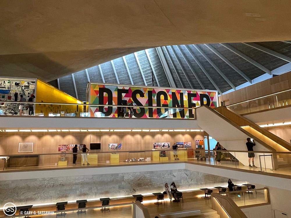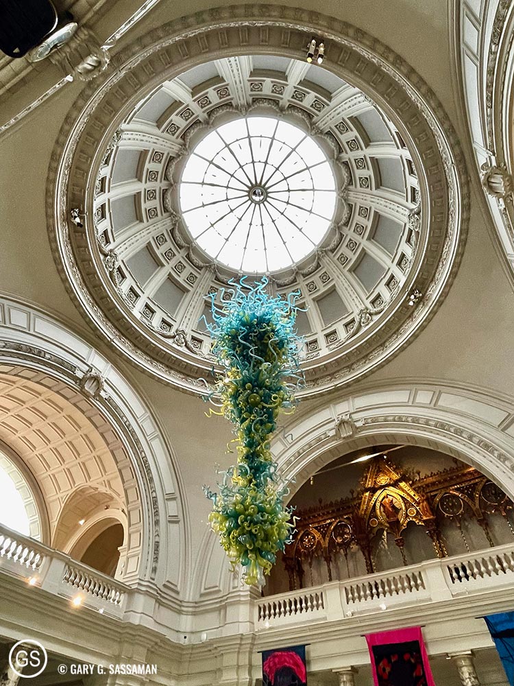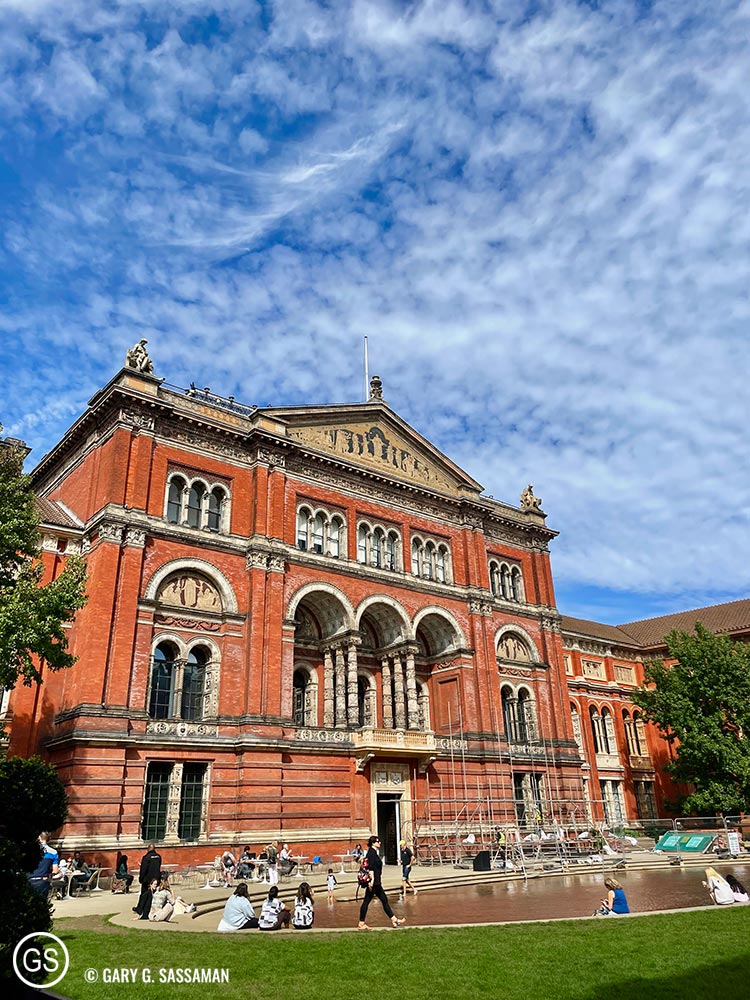 Monday was our pre-planned “Museum Day,” and we visited the Design Museum in Kensington and the Victoria and Albert Museum (V&A) in Knightsbridge. After a confusing start, Tube-wise, we ended up walking quite a bit from the station to the Design Museum. It’s a very beautiful building, much better than it’s first incarnation over by Tower Bridge, which I visited back in 2014. There’s a large, permanent, free exhibit on the top floor, “Designer, Maker, User,” which houses an incredible amount of everyday objects that feature slick, utilitarian design. I love the colorful moving sign board that greets visitors to this exhibitor at the top of the building. Other paid exhibits included “The World of ASMR,” which is not a world I particularly want to visit, since the whole ASMR thing is entirely lost on me.