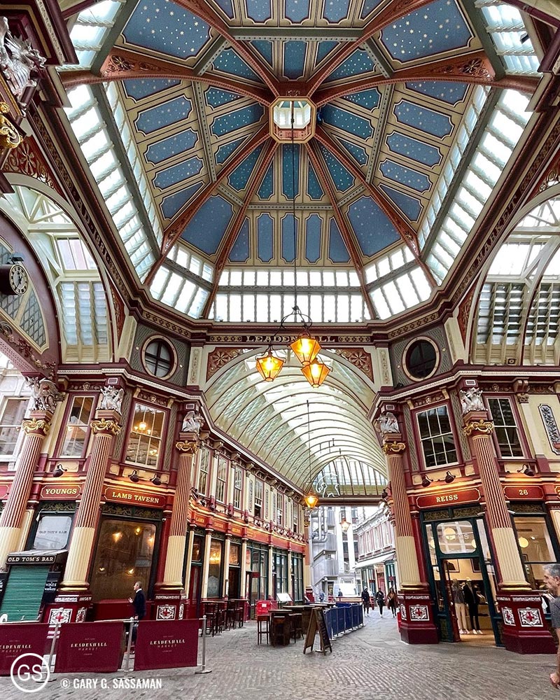 Before we entered the magical world of Sky Garden, which is literally a garden in the sky with beautiful landscaping, we went to the ancient Leadenhall Market, which is also worth a walk-through, if only to appreciate its ornate beauty. It’s filled with restaurants and shops now, but it dates back to 1321 and it sits on land that was once part of the Roman Empire. We, of course, found a bookstore (Waterstones) to spend some time in out of the rain, and also visited a Marks & Spencer department store. (One does not go to London without a trip to M&S.)