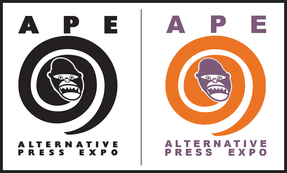 Black & white and original color versions of the APE logo, designed by Scott Saavedra.