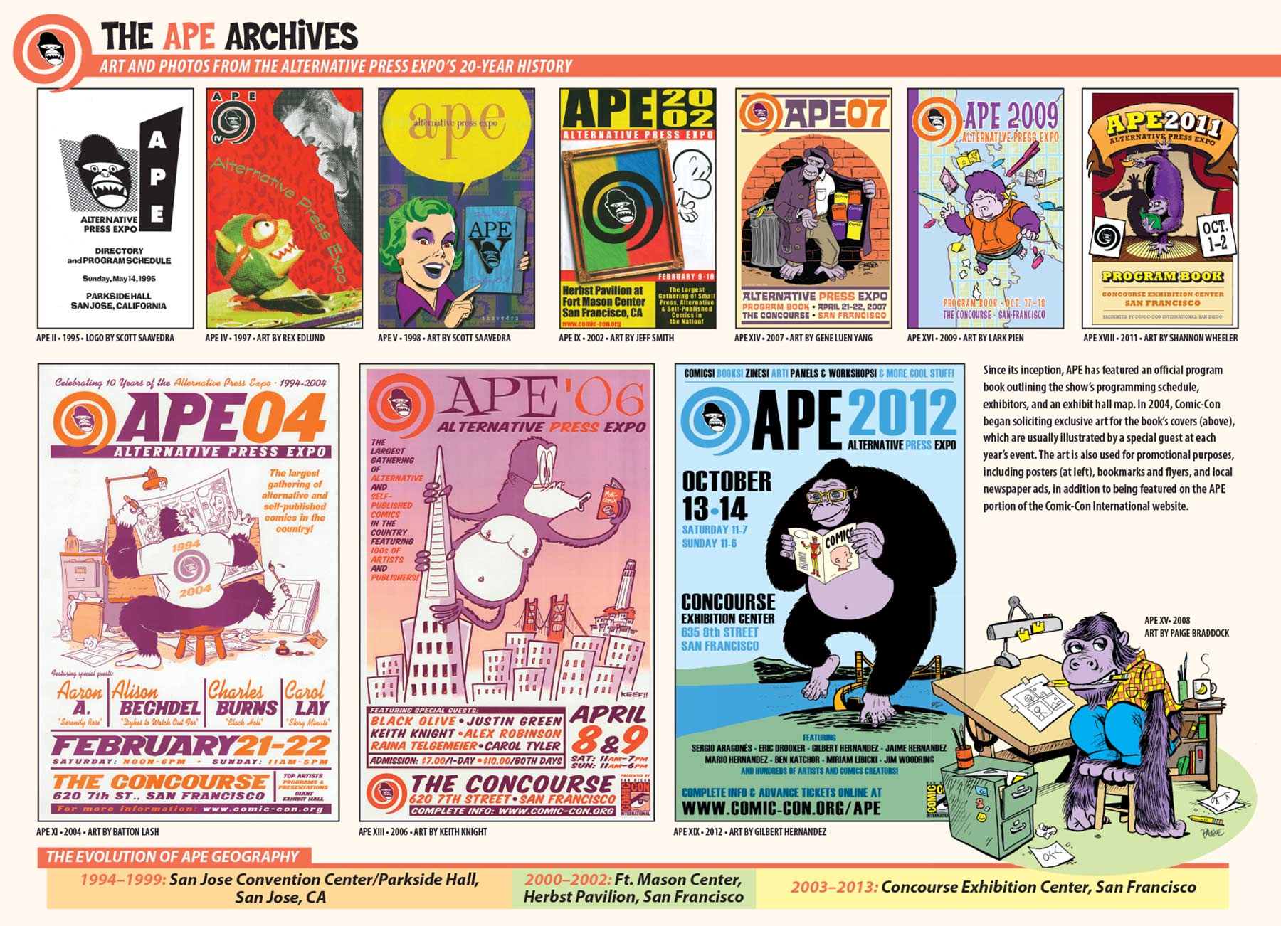 But before I get into my own role in the show, let’s talk a little history. Here are some excerpts from a piece I wrote in 2013 for APE’s 20th anniversary, which was printed in a special section of the APE 2013 Program Book, titled “APE: The 20-Year Evolution of the Species.”