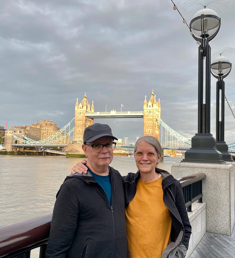 Yours truly and Laurel in front of some sorta famous bridge in London, taken by a kind stranger.