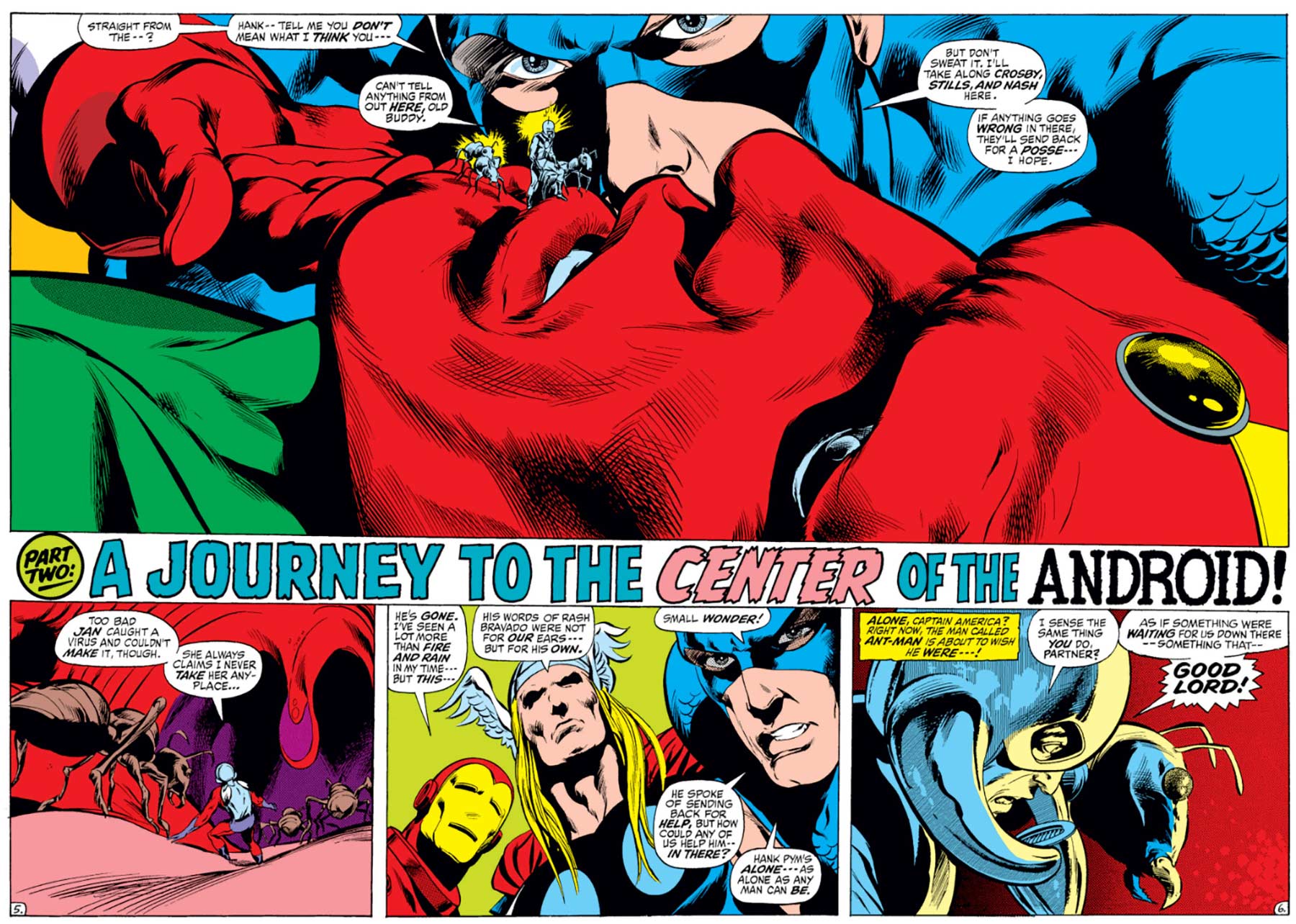 A two-page spread by Neal Adams and Tom Palmer, just a sample of the amazing art in Avengers #93. TM & © MARVEL.