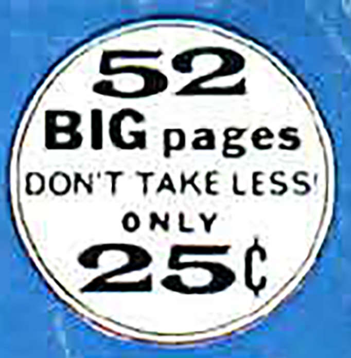 In 1971, under President Richard M. Nixon, inflation was increasing at a rapid rate in the United States, up 5.4% (by comparison, It had been up about 1% per year in the 1960s). Everything cost more. When the printer that printed both DC and Marvel’s comic books told the companies the cost of paper and printing would be going up, the companies decided—separately or together, no one quite knows—to raise their price from 15 cents, where it had been for DC, Marvel, and Archie since 1969, just two years earlier. But this time instead of the usual two or three cent increases of the 1960s (from 10 to 12 to 15 cents), DC jacked up the price to 25 cents per book, starting with their August 1971 cover-dated books, which were probably on sale in June (DC had a two-month lead-time on cover dates, Marvel three months). Their books were 48 interior pages but they also added in the covers to proclaim them as “52 BIG pages DON’T TAKE LESS 25¢”. DC offered one new story plus reprints in each book; the company’s extensive back library of stories available on film made reprints dating back to the 1940s easy.