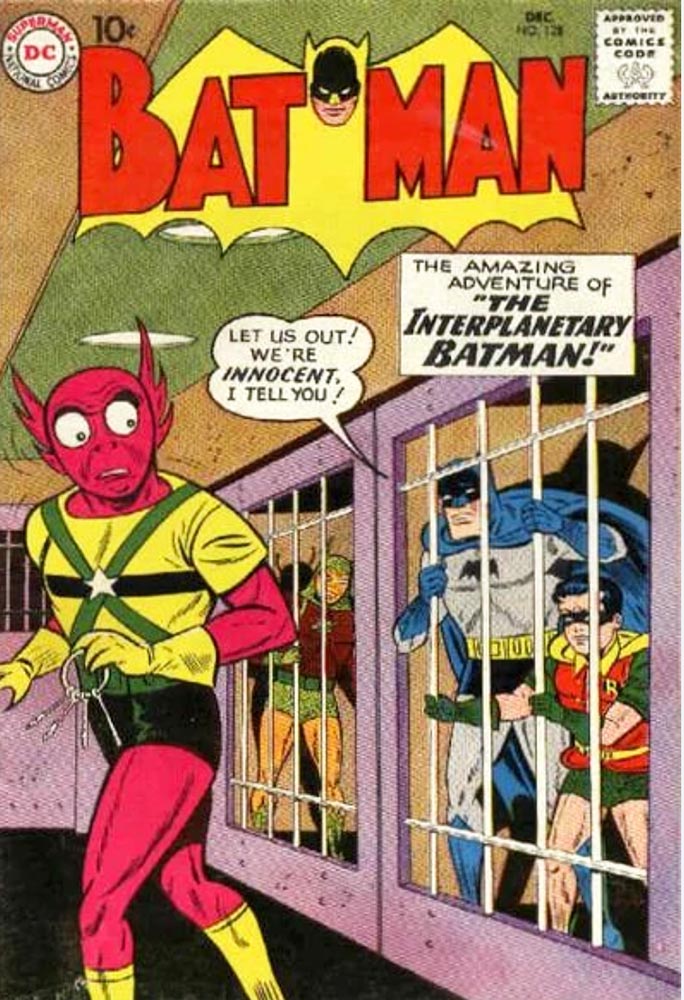 Editor Jack Schiff edited the Bat-books at this time, including World’s Finest Comics, where—hyperbolic title nothwithstanding—Superman AND Batman (with Robin tagging along) teamed up each issue in an exciting new adventure (some drawn by Dick Sprang or Curt Swan, two of DC’s finest). Schiff also edited DC’s “House” books, House of Mystery and House of Secrets. And whether it was due to the success of science fiction movies at the box office in this era or Schiff’s own personal preferences, Batman frequently found himself encountering alien menaces both here on Earth and also on other planets. All those new Bat-Family additions were probably spawned by the success of Mort Weisinger’s Superman books. Old Supes had Superboy, Supergirl, Krypto the Super-Dog and Streaky the Super-Cat, plus the occasional Superbaby story (and don’t forget Comet, the Super-Horse). And he also had alien adversaries like Braniac, and incredible transformations due to the effects of Red Kryptonite. Batman was just keepin’ up with the Superman Family next door, but he was failing miserably at it. At one point, Detective Comics, the title the company’s logo—DC—was named after, featured on each and every cover, was on the verge of cancellation under editor Schiff.