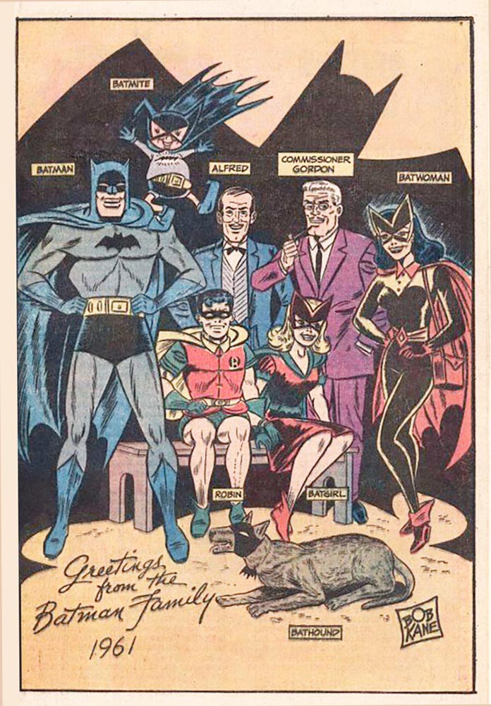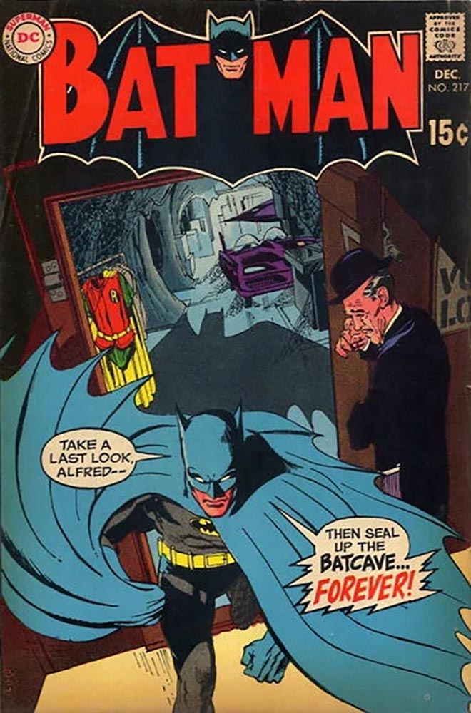 Batman was in a scary place in the late 1950s and early 1960s. Both his books, Batman and Detective Comics, had reduced the Dark Knight from a fearsome creature of the night with one of comics’ best rogues galleries to an ongoing series of science fiction-tinged, embarrassingly unfit tales. And if it didn’t involve an alien, then Batman had undergone some kind of startling transformation. He was negative. He was zebra-striped. He was colossal. (He was also “Bat-Baby,” but we’ll get to that in a minute.) Or there was yet another tale featuring yet another new member of the burgeoning Bat-Family: Batwoman or Batgirl or Ace, the Bat-Hound, or the dimension-hopping Bat-Mite. There was even someone called “Batman Jones” at one point, a kid who was named after Batman and took up crime-fighting for a spell. Oh, and there was a Bat-Ape in one story (he wore a mask to protect his secret identity, as did Ace).