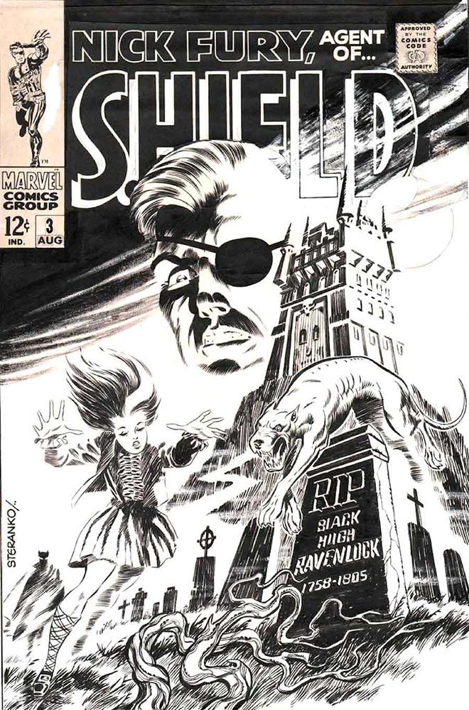 I’m still waiting for Steranko’s remastered version of Chandler, called Red Tide, which was announced around 1999 from Dark Horse Comics. And his second Artist’s Edition from IDW, which would feature all the rest of his Nick Fury original art and art from Captain America, too. Oh, and I keep hoping for The Steranko History of Comics volumes 3 through whatever. At almost 85 years old, he’s still with us, active on Twitter (@iamsteranko), and still a force of nature, I’m sure. And even though he had a way-too-brief career at Marvel—he certainly left while he was on top— next to Kirby’s Fantastic Four run, Steranko’s Nick Fury stories are my favorite Marvel Comics stories, a run I feel contains some of the best comics ever created.