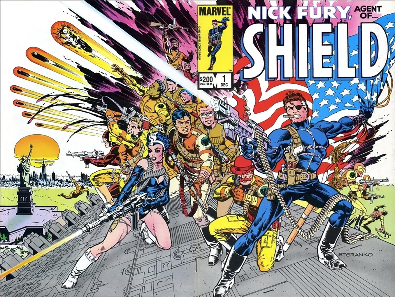 An amazing wraparound cover by Steranko for a Nick Fury series in Marvel’s Baxter line of reprints in the 1980s.