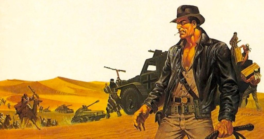 At this time, he also became a paperback cover artist, producing a memorable run of covers for The Shadow series from Pyramid Books, which reprinted the old Shadow stories from the pulp magazine of the same name, written by “Maxwell Grant” (Walter Gibson). He also did three G-8 and His Battle Aces covers, and a number of sci-fi and fantasy ones, too. In 1972 he created Comixscene, a regularly published tabloid newspaper about comics; it quickly morphed into Mediascene, incorporating movies and other media into the content mix, and eventually became Prevue, a large-format magazine that lasted for a combined run of all three titles (which continued its numbering from title change to title change) from #1 in 1972 through #92 in 1994. In 1976, he produced what he will tell you is the first graphic novel (even though he didn’t call it that), Chandler, published as part of Byron Preiss’s Fiction Illustrated line. Chandler is amazing; Steranko came up with a whole new illustrated format for this book, which had two panels per page with corresponding text blocks beneath each panel. He did pre-production artwork on Raiders of the Lost Ark around 1981, providing paintings of Indiana Jones, and for Francis Ford Coppola’s 1994 film, Bram Stoker’s Dracula. One of his last big comics projects was an adaptation of the Sean Connery science fiction movie, Outland in 1981, which was published in Heavy Metal (issues #51-55 and 58), in the U.S., but never completed here (there is a complete graphic novel collection of it in a French version, I believe). Outland, like Chandler before it, convinced me once again what an amazing talent Steranko was, a one-of-a-kind creator who has never really been equaled.