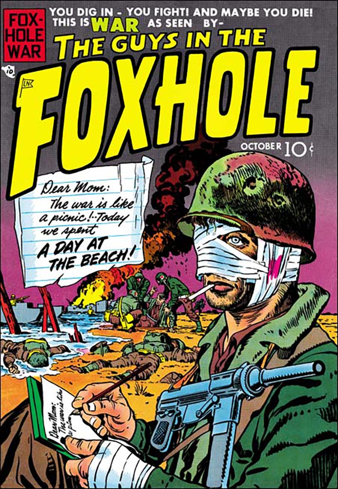 Both Lee and Kirby served in World War II, but only Jack saw action; he landed on Normandy Beach two months after D-Day, and fought his way through Europe until being hospitalized due to frostbite on his feet. He spent a year in the hospital but recovered, going home in January 1945. I’m sure like a lot of veterans, he carried his war experiences with him for the rest of his life, even if he kept quiet about them, but it certainly came across in his war comics work, including Foxhole (published by Simon & Kirby’s own Mainline Comics in the 1950s) and “The Losers” for DC’s Our Fighting Forces comic in the 1970s. For some of Kirby’s recollections about his time in action during the Big One, click here.