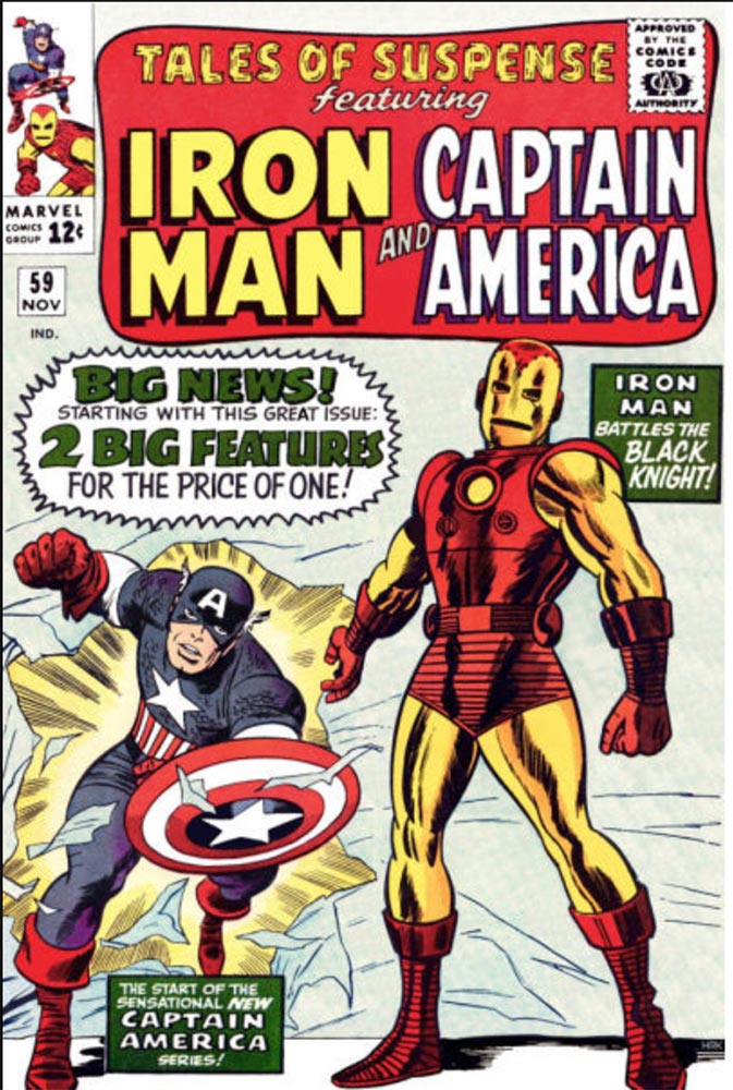 Captain America’s re-introduction in the Marvel Age of Comics started with an appearance by a bogus Cap in Strange Tales #114 (center). Simon & Kirby’s first issue (far left) was published in late 1940; the real Cap returned in Avengers #4 in early 1964.