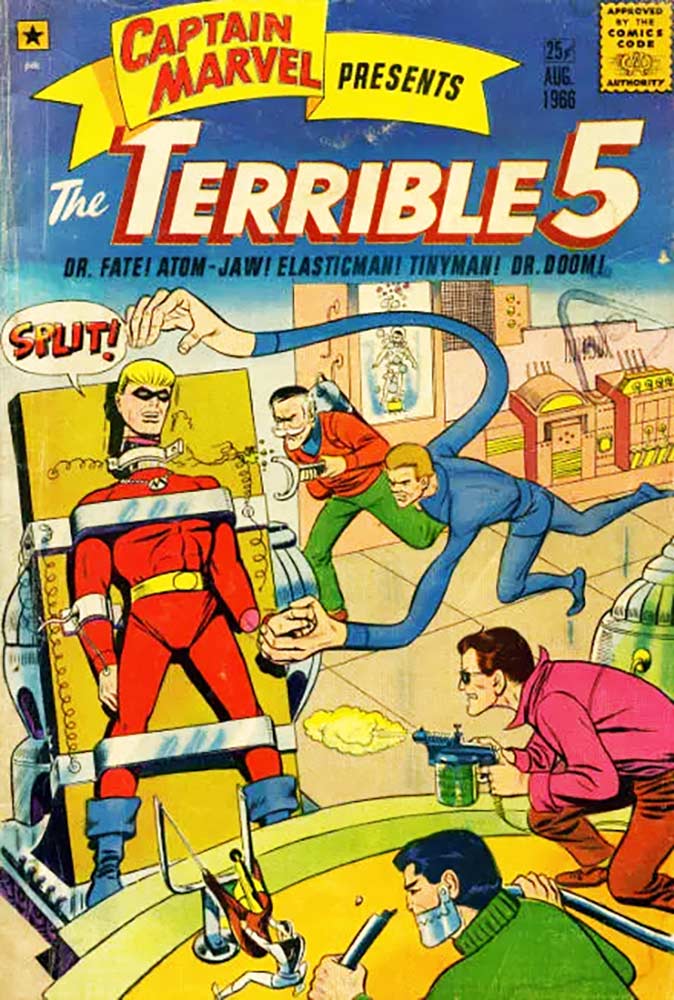 In the mid-1960s, during the superhero craze brought about by the one-two punch of the success of Marvel Comics and the Batman TV show, numerous copycat comics started to pop up. Bargain basement publisher Myron Fass sensed an opening and brought out a Captain Marvel comic, thinking the copyright had lapsed on the original Fawcett character. Created by Carl Burgos, who had his own axe to grind with Marvel over the copyright for his Human Torch character, this Captain Marvel had the ability to split his body parts away from his torso. It was not superhero comics’ finest hour. And while DC effectively stopped the continuing publication of Captain Marvel comics featuring the original, Fawcett still owned the rights to the character. But that didn’t stop Fass from producing a grade-Z, in-name-only knockoff in a series of 25-cent comics that premiered in 1966 and lasted only six issues (four regular issues plus two specials).