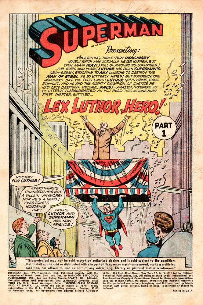 Superman #149, November 1961. Cover by Curt Swan and George Klein. Art in this post TM and © DC.