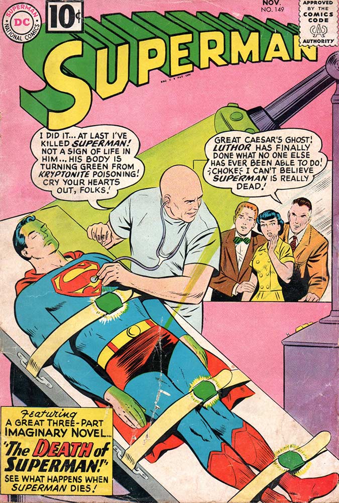 When you’re six years old, you don’t really understand the meaning of the phrase “A Great Three-Part Imaginary Novel,” as stated on the cover of Superman #149. It was the introductory line for a story called “The Death of Superman!” … “See What Happens When Superman Dies!” I mean, they’re all comic book stories, right? If Superman dies, who will be in issue #150?