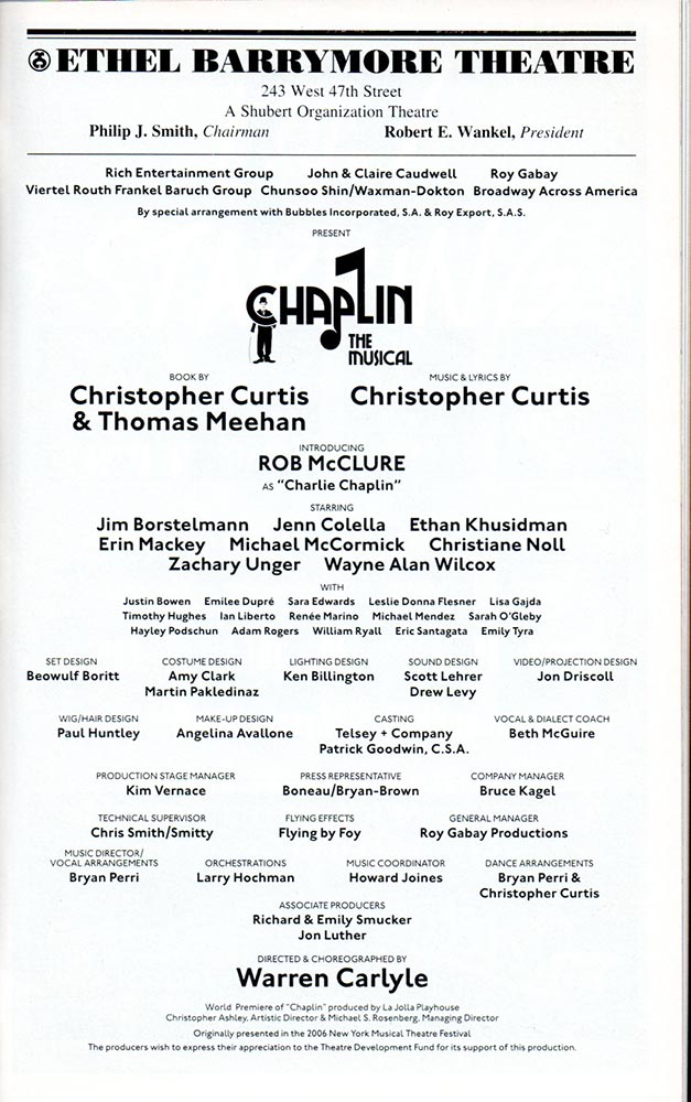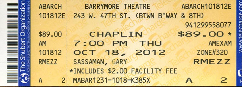 Chaplin the Musical ran for 135 performances and 24 previews from August 21, 2012 through January 6, 2013, so evidently I wasn’t the only one who found it disappointing.
