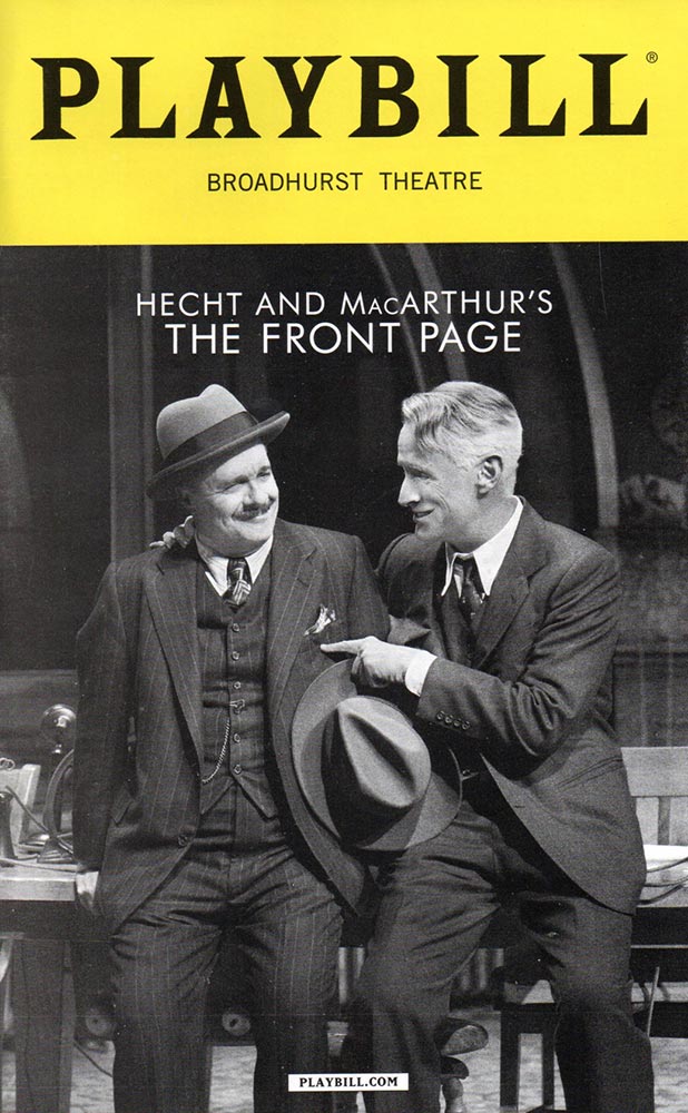 This is the last play I’ve seen on Broadway and it was an amazing one to go out on. I have always been a fan of The Front Page as a movie, mainly the Cary Grant-Rosalind Russell version from 1940, His Girl Friday. It’s a classic tale of a muckraking newspaper and a murder case involving an escaped death row inmate. Throw in an ace reporter and editor’s fractured relationship and you have, in essence, a love story. The cast of this revival was amazing: Nathan Lane as editor Walter Burns, John Slattery as reporter Hildy Johnson, John Goodman as Sheriff Hartman, Jefferson Mays as Bensinger, Holland Taylor as Mrs. Grant, and Robert Morse as Mr. Pincus. Other names you may or may not recognize include TV actors Joey Slotnick, Dann Florek, and Lewis J. Stadlen (who played Groucho Marx on Broadway in Minnie’s Boys). I remember watching this and wondering where the hell Nathan Lane was until the end of the first act when he was revealed to have been there in the courthouse reporters’ room all along, standing back and observing all the chaos going on. I had no idea when he slipped on to the set. I was also—once again, as with The Addams Family, also starring Lane—lucky enough to see this on a night when all of the major cast were performing.