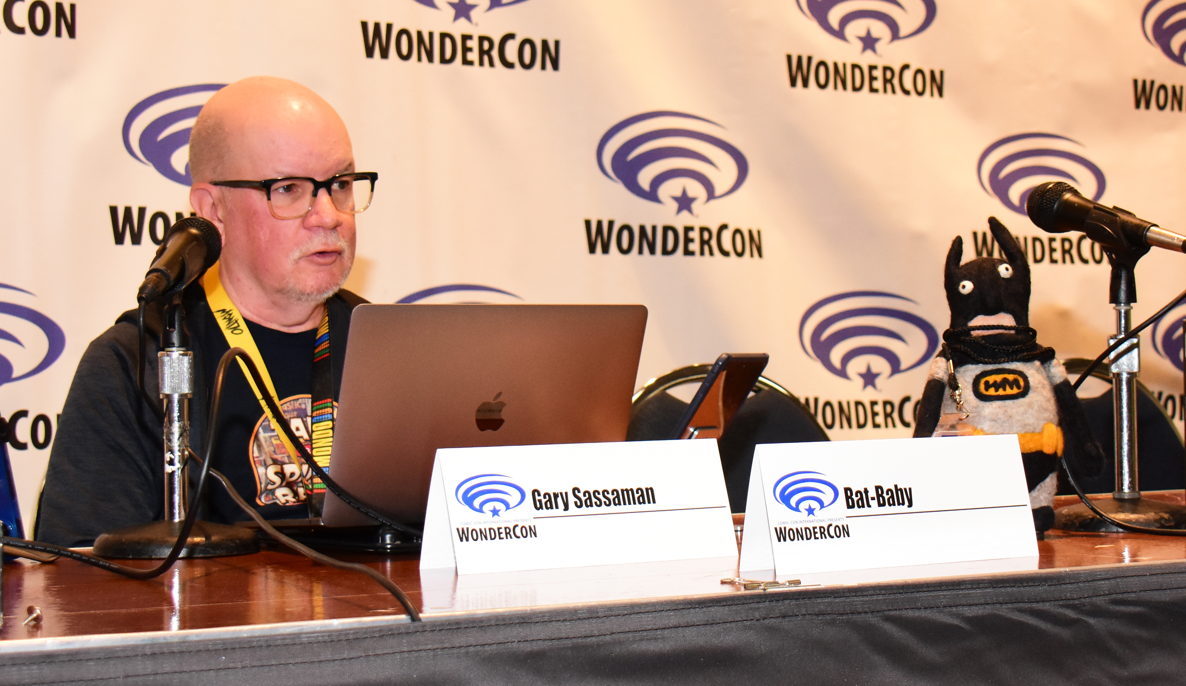 Me looking a bit shocked by what my special guest Bat-Baby just said at the Tales from My Spinner Rack LIVE! panel at WonderCon. Needless to say, Bat-Baby will NOT be invited to Comic-Con.