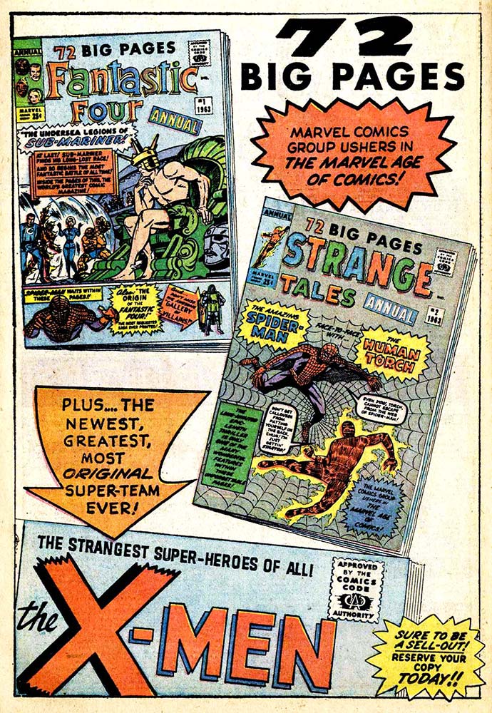 So Stan Lee had his marching orders, but here’s where things get a bit fuzzy. According to our friend Mark Evanier in a post from 2013 (the 50th anniversary of the debuts of Avengers and X-Men), Goodman cancelled two bi-monthly books—Gunsmoke Western and Love Romances (is there any other kind of romance?)—to make room for the two new books. But according to Tom Brevoort (who we don’t know personally, but whom we like very much) in a post from 2019, Goodman had made a deal with his distributor, Independent News, to add two new titles to his line-up. IND, as it was known on the covers of Marvel Comics back then, was owned by DC Comics (known then as National Periodical Publications, despite the DC logo on every cover), and had restricted Marvel’s monthly output of books to a specific number—eight, which Goodman got around by publishing 16 bi-monthly titles; Fantastic Four made 17, but evidently nobody noticed. So there seems to be some difference of opinion—by two well-known and well-respected comics historians/pros—whether Goodman cancelled two books or got the go-ahead to add two books.