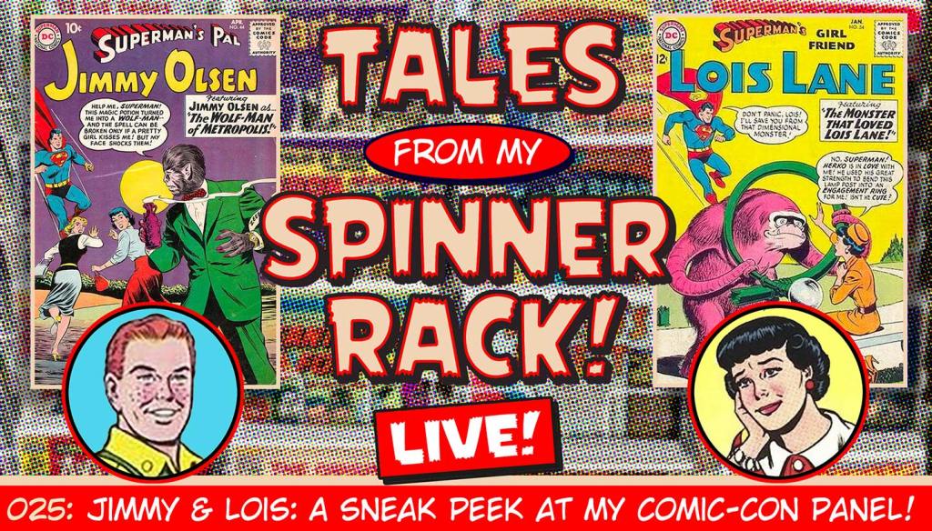 Next time: IT’S PANEL TIME! (Which is just like Hammer Time, but I don’t wear the baggy pants or dance funny.) If you’re attending Comic-Con on Friday, July 21, please come see my panel, “Tales from My Spinner Rack LIVE!” at 2:00 PM in Room 29AB. The topic is the heart-warming and nostalgic “Jimmy & Lois: Still Crazy After All These Years!” Tune in next week for a sneak peek!